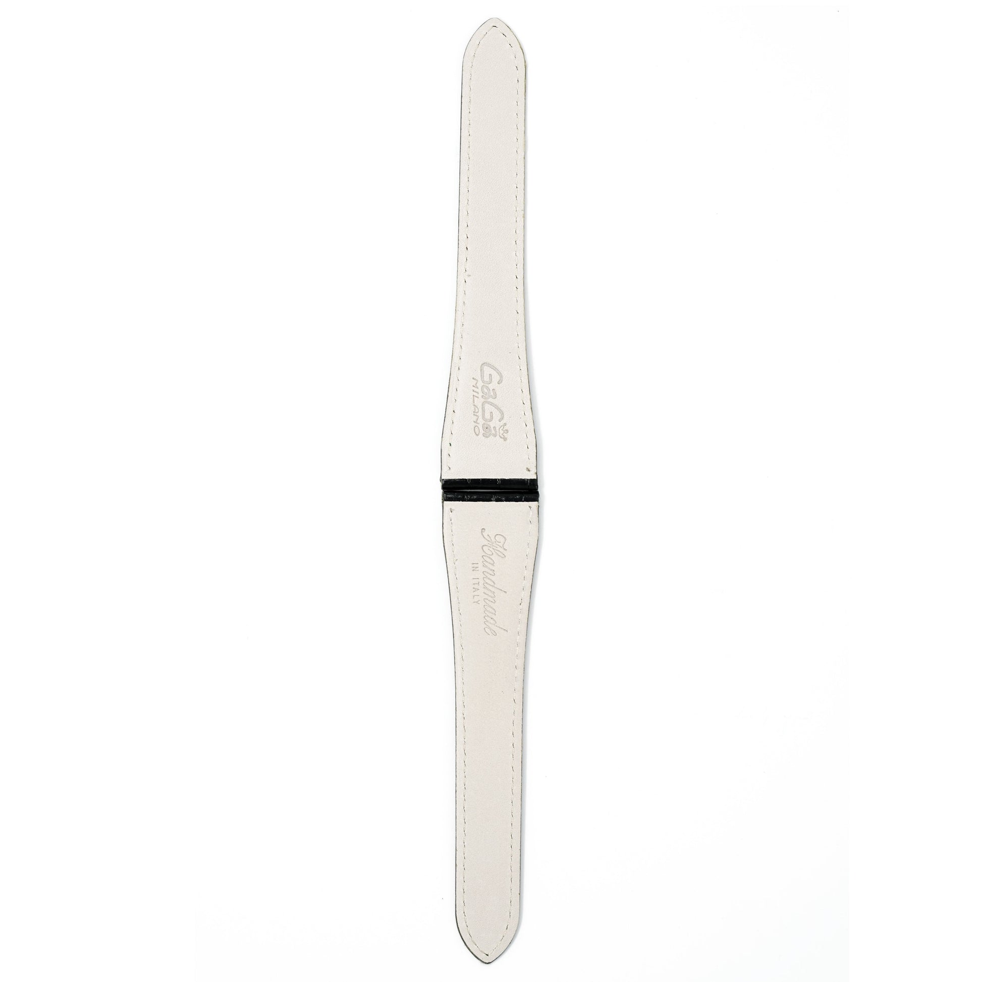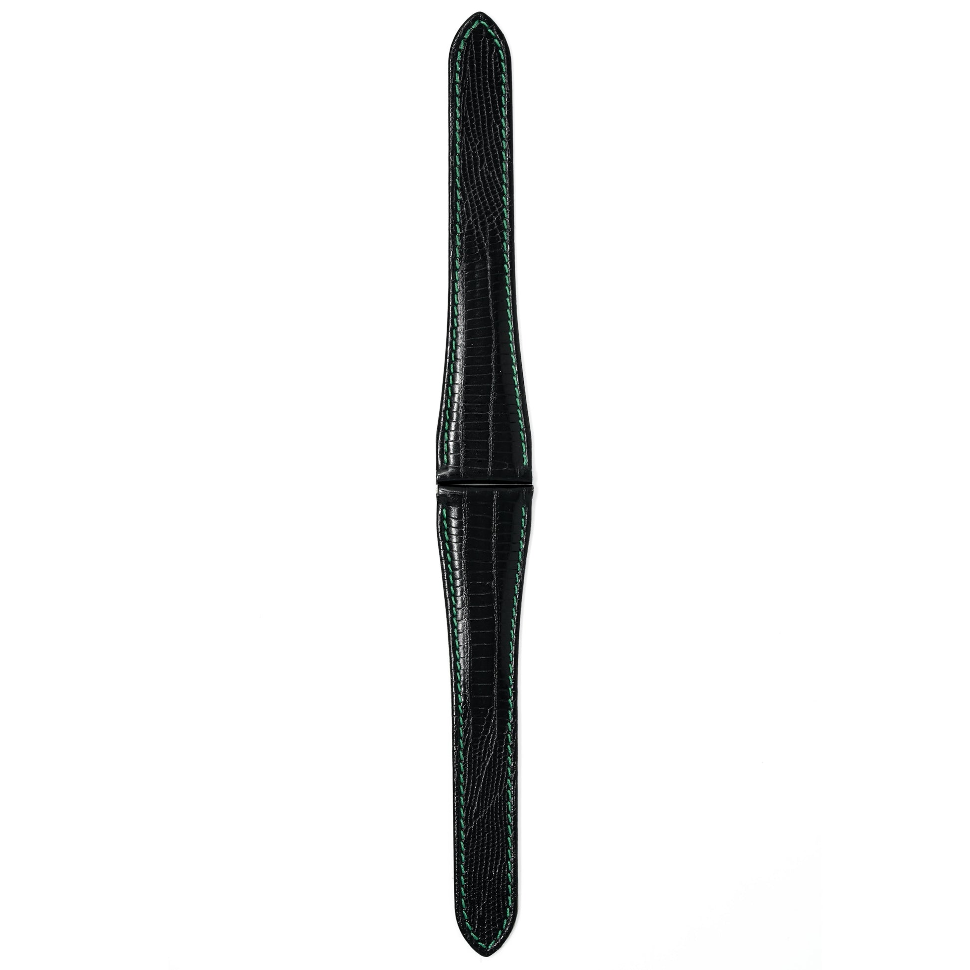 23/15mm width x 23cm Length Black Lizard Handmade in Italy Leather Strap with Green Stitchings.