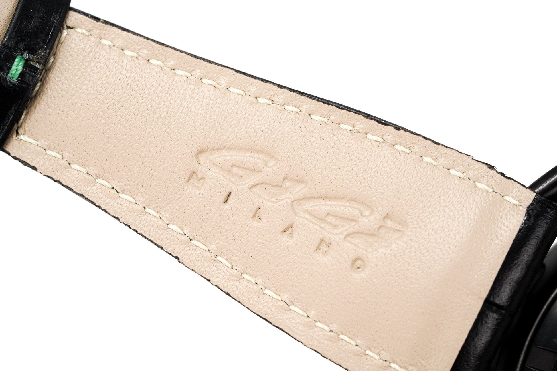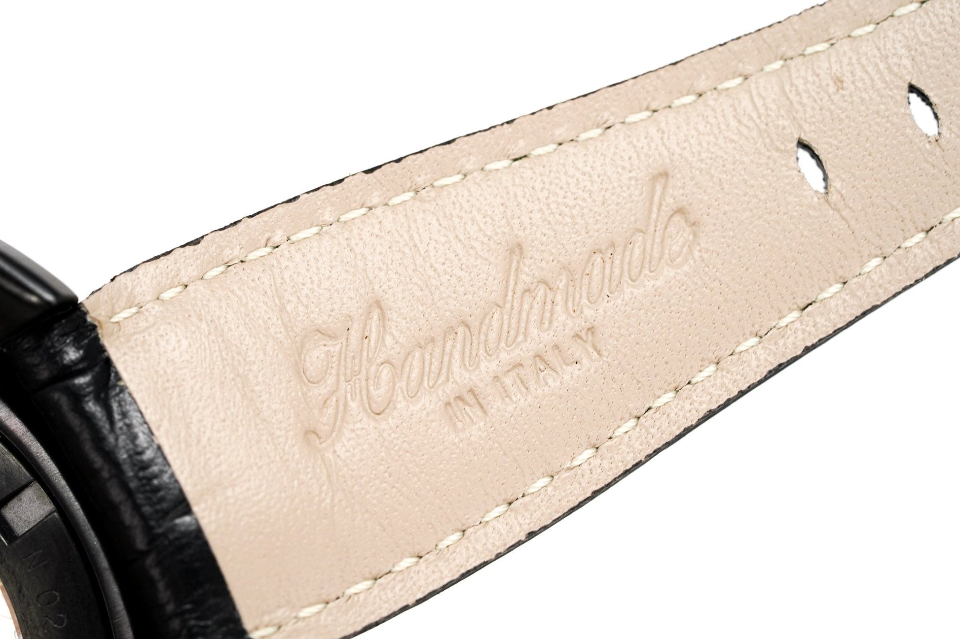 25/16mm x 17.5cm Black Handmade Italian Croco Imitation Leather Strap with Black PVD Stainless Steel Buckle.