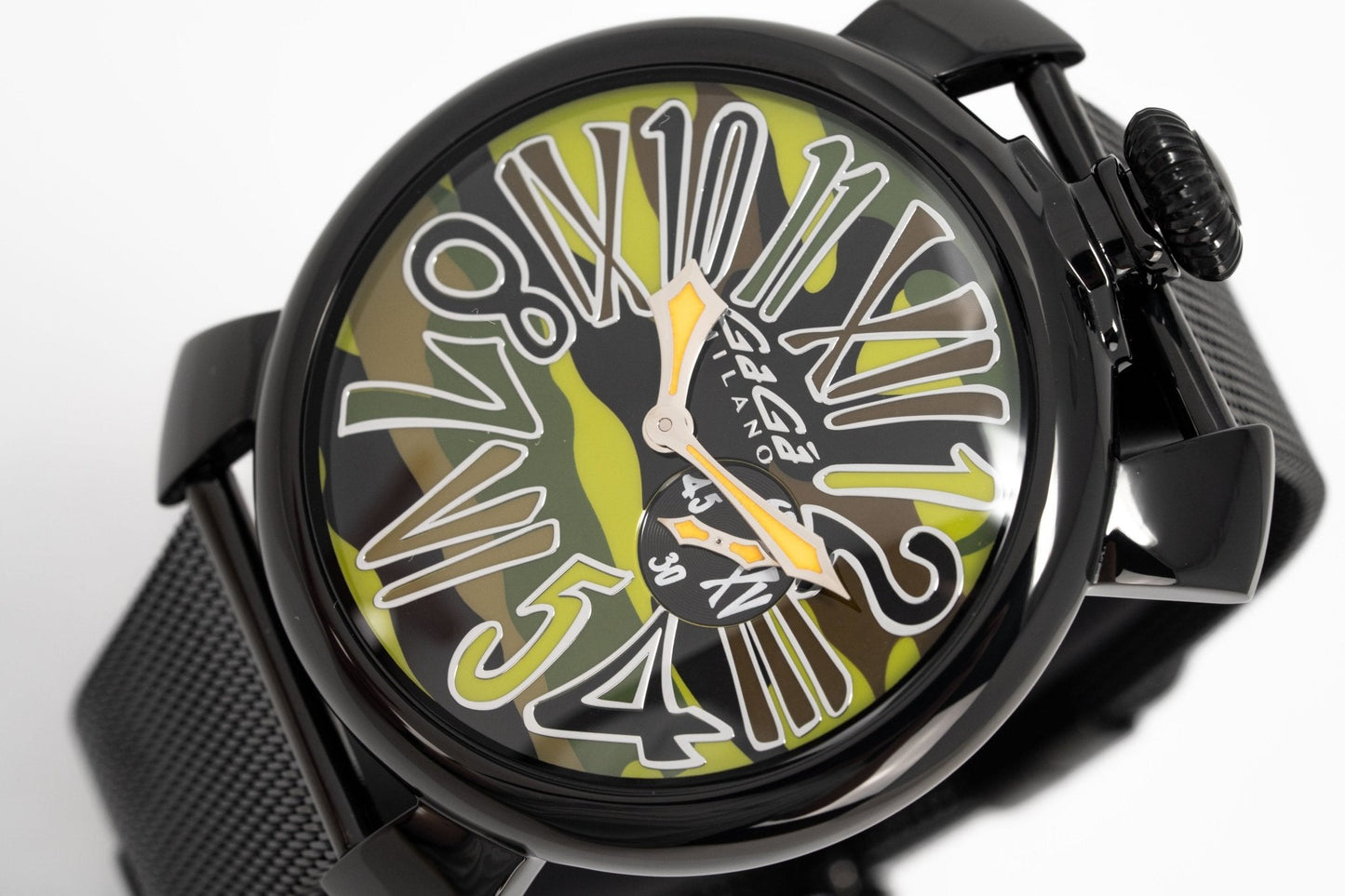 Gaga Milano Watch Slim 46 Black PVD Green Camo 5082.03