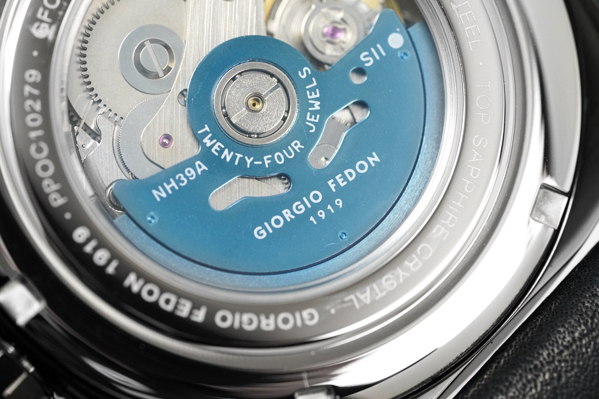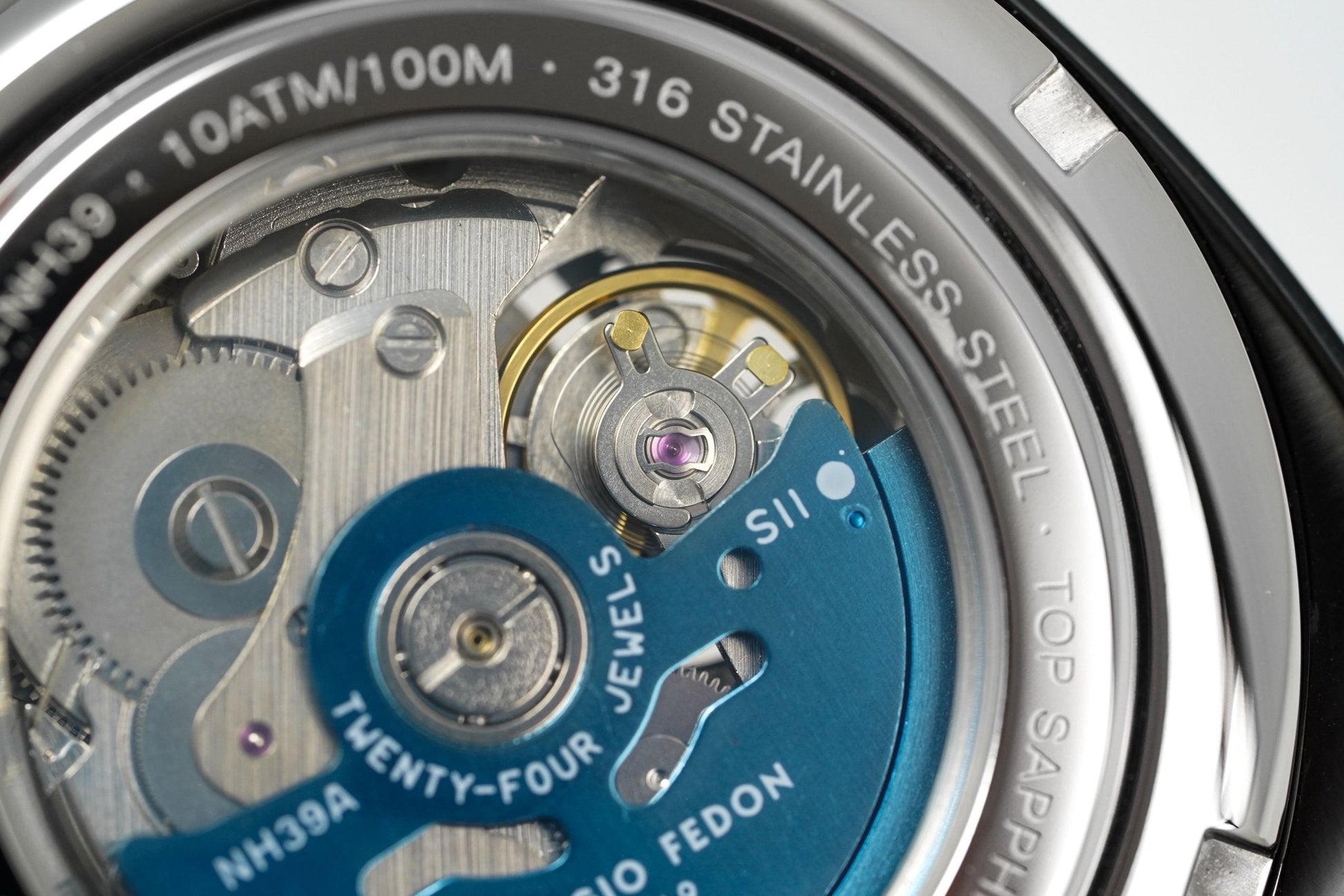 Japanese Made Seiko NH39 Automatic Movement - 24 Jewels, 21,600 bph, DiaShock Anti-Shock System, 41 Hour Power Reserve - 24 Hour Indicator - Date Window