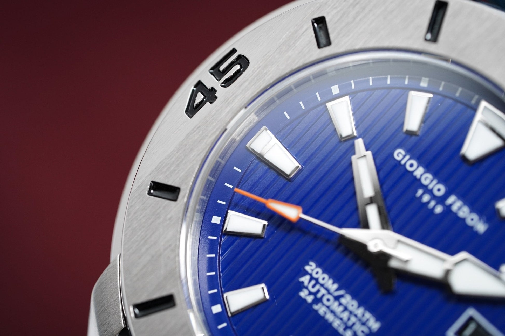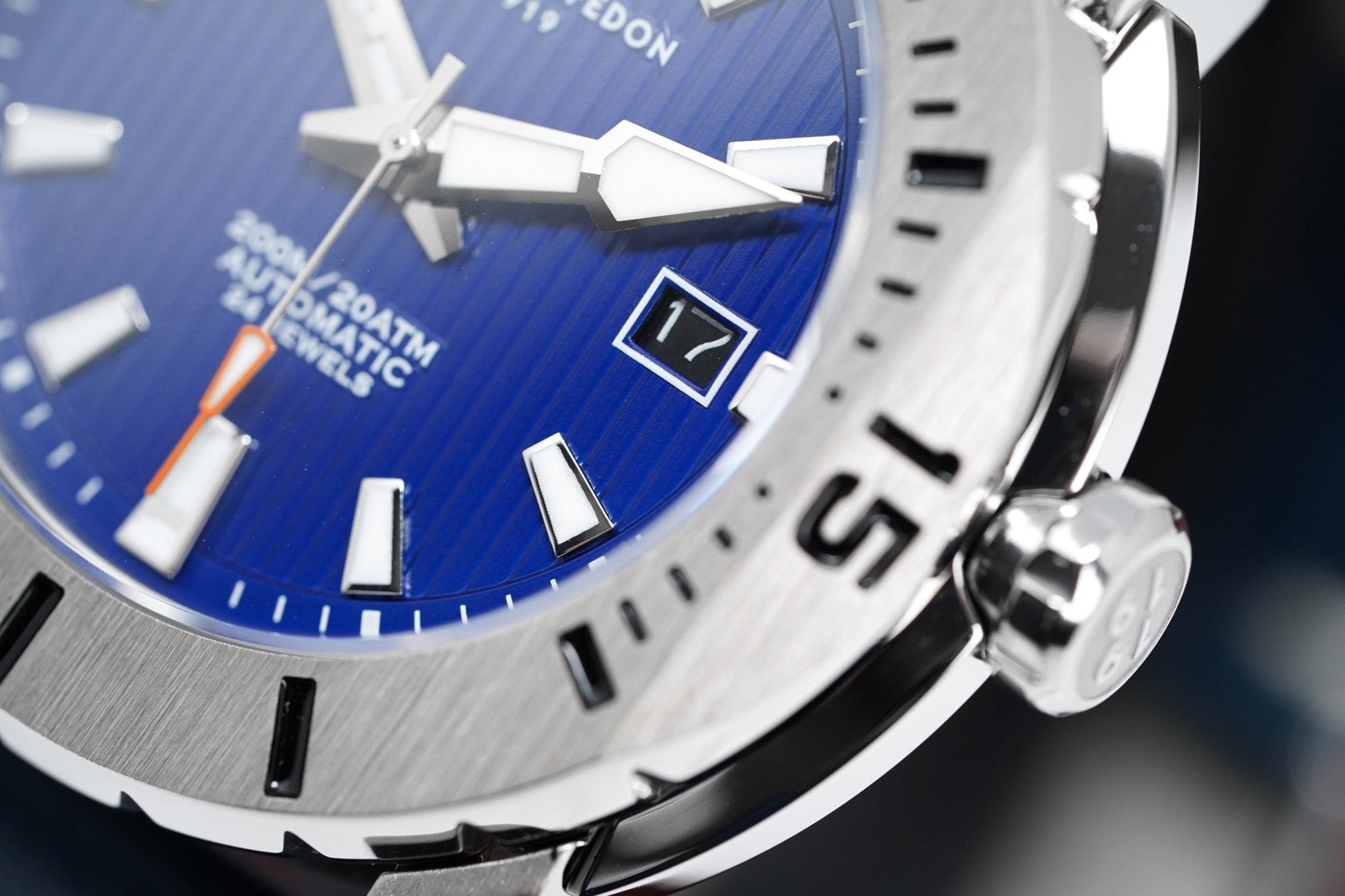 Blue Dial - Applied Stainless Steel Markers and Hands with Super-LumiNova® - Magnified Date Window at 3 O'Clock