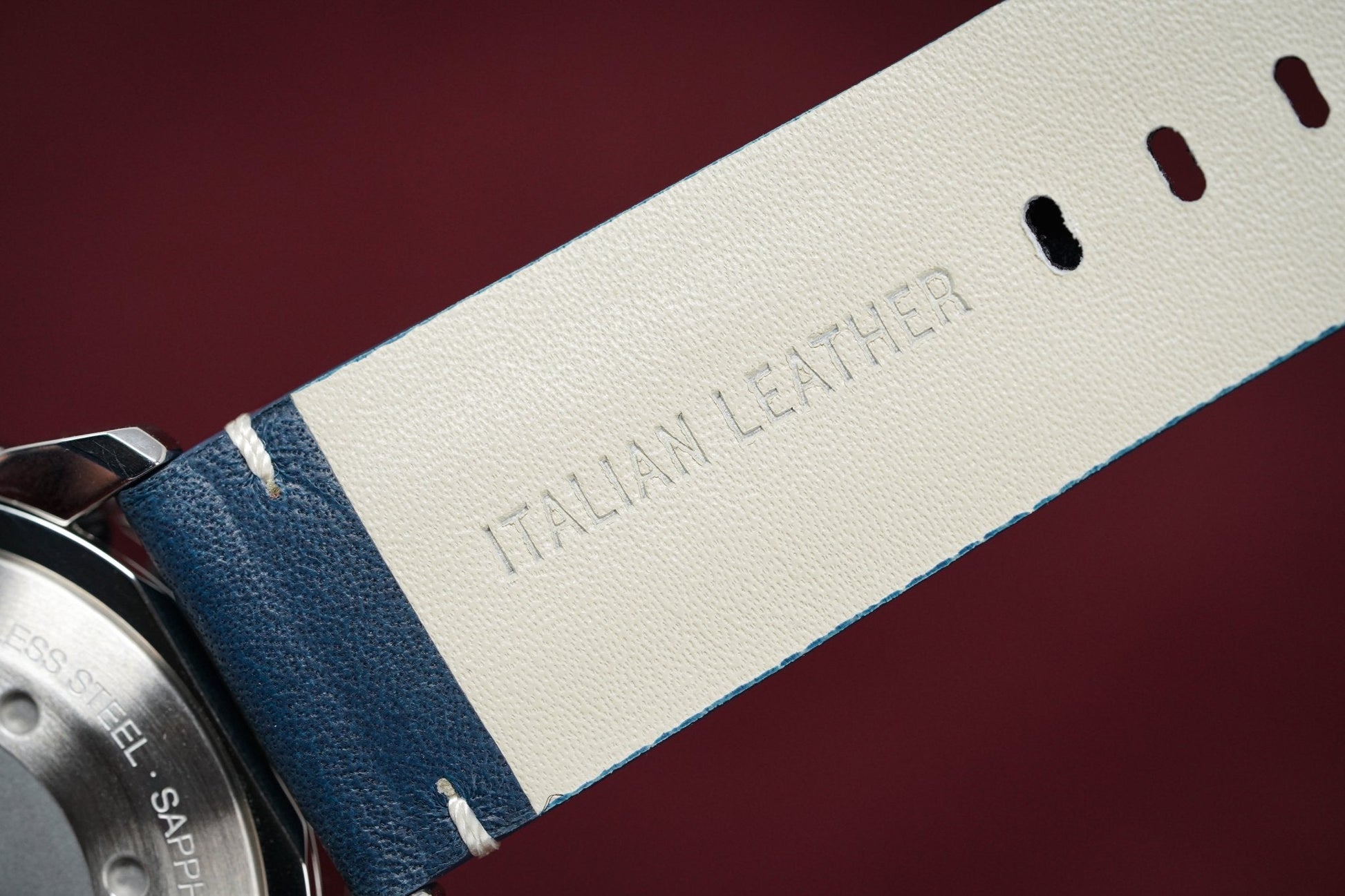24mm x 19cm Blue Italian Vegetable Tanned Leather Strap with 316L Stainless Steel Pin Buckle