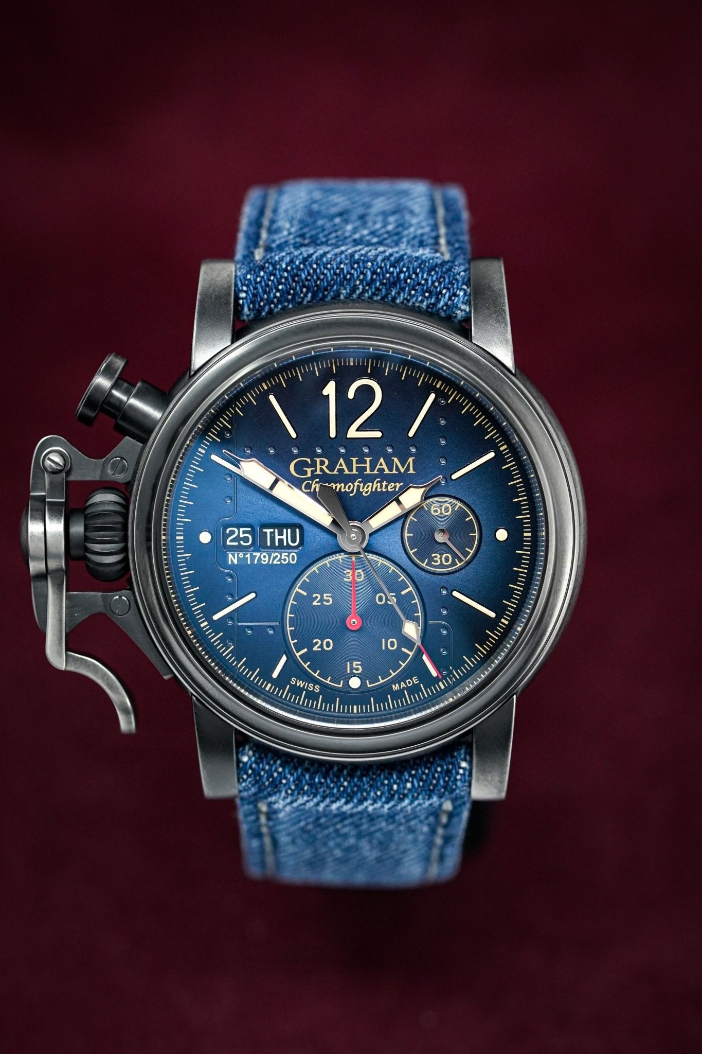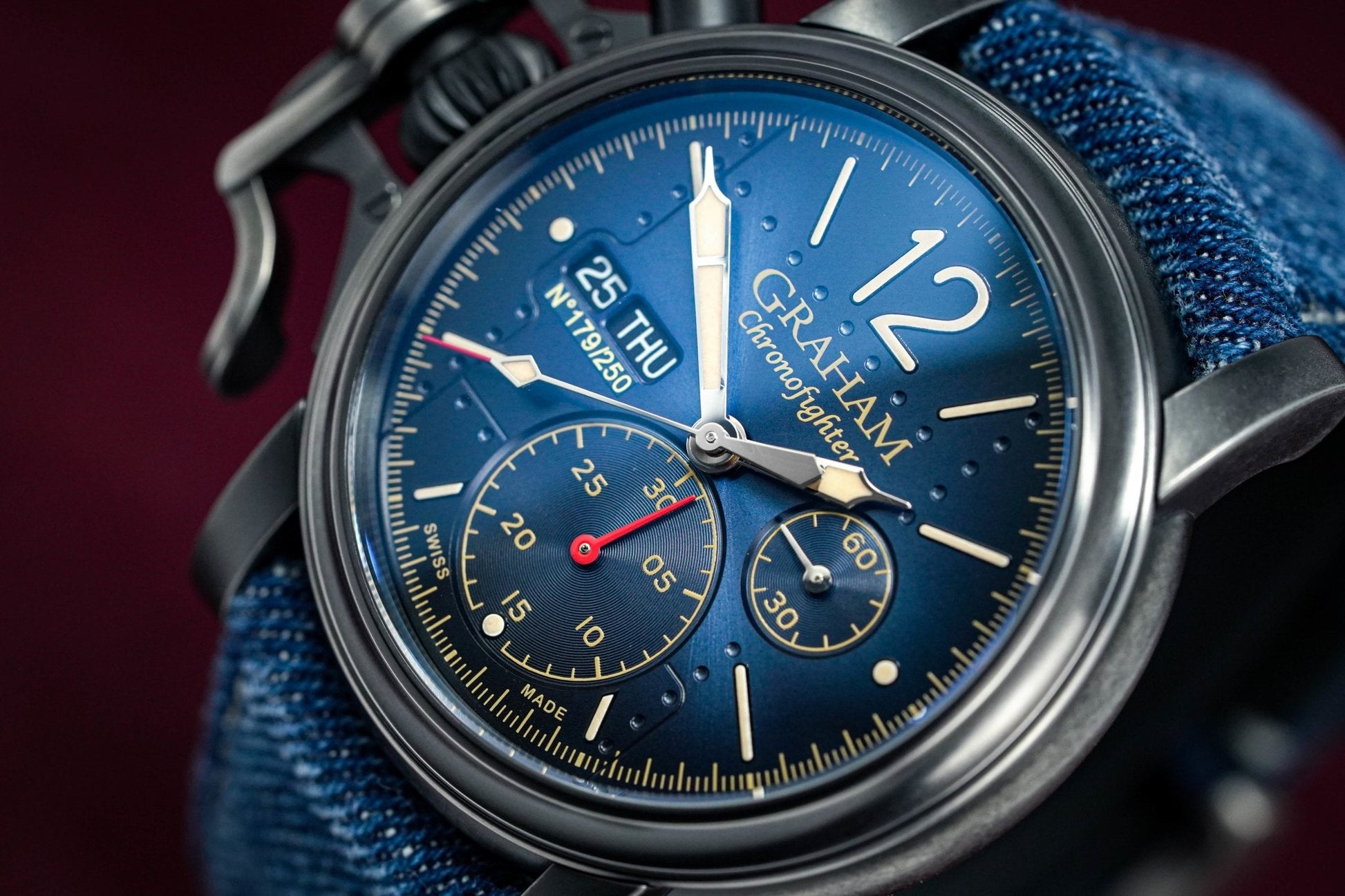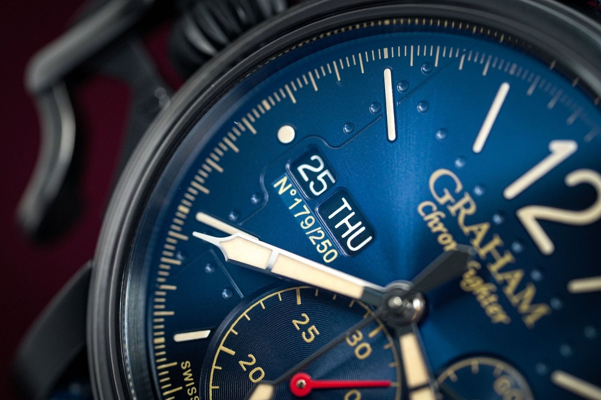 Blue Riveted Dial - Analog - White Super-Luminous Hands - Numerals and Indexes Hour Markers - White Chrono and Red Counter's - Limited Edition Number at 9 O'Clock Position