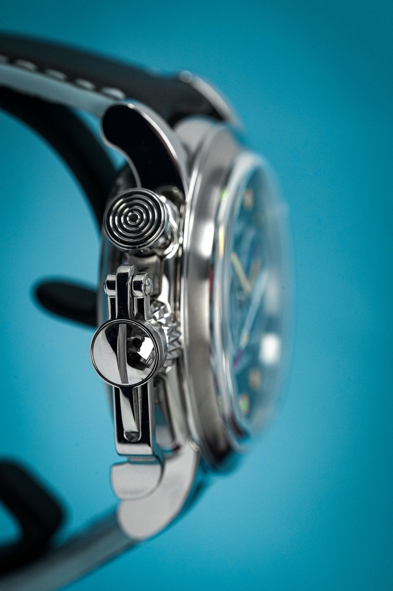44mm x 15mm Stainless Steel Case - Fast-action Start/Stop Trigger and Reset Pusher - Fixed Bezel - Domed Sapphire Crystal with Anti-reflective Coating