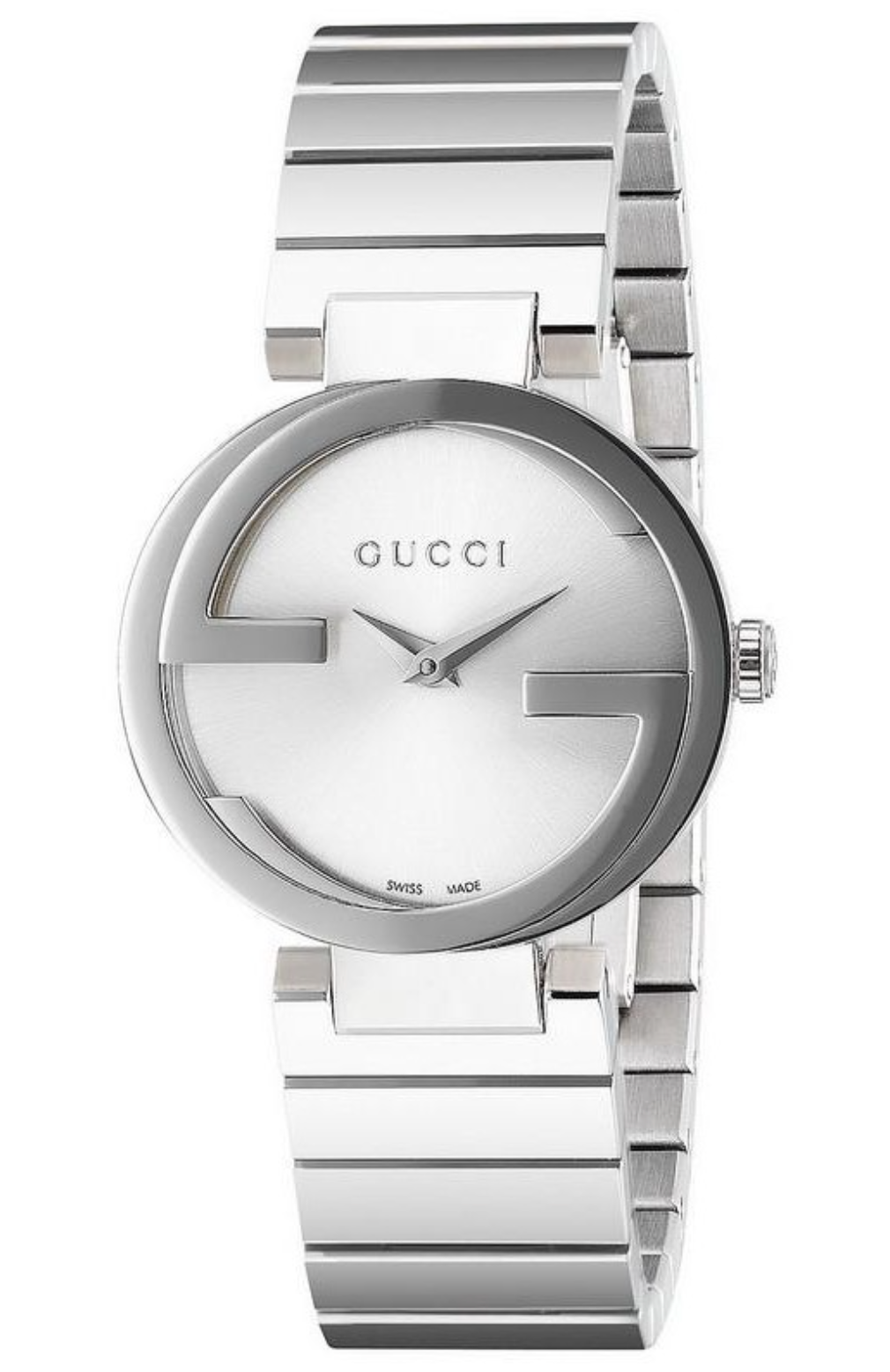 37mm x 8mm Stainless Steel Case with Interlocking Gucci Logo Bezel. Scratch Resistant Sapphire Crystal Glass. Push-Pull Crown. Solid Caseback.