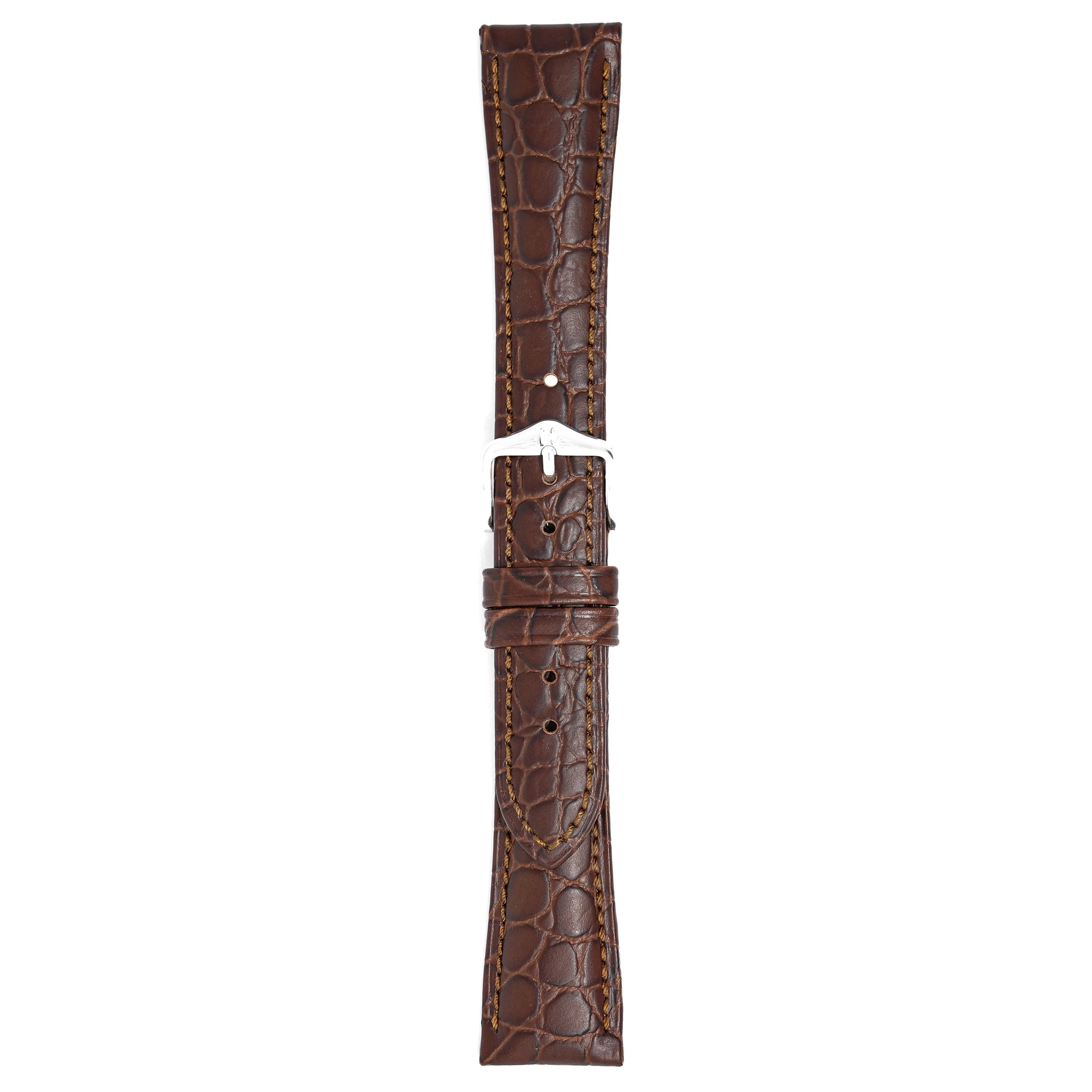 20mm width x 20cm Length Brown Crocodile Embossed Leather Strap with Brown Stitchings - Fitted With a Polished Stainless Steel Buckle.