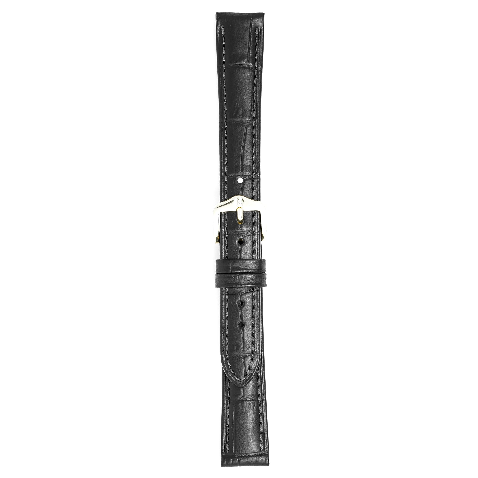 14mm width x 18cm Length Black Alligator Embossed Leather Strap with Black Stitchings - Fitted With a Polished Gold Plated Stainless Steel Buckle.