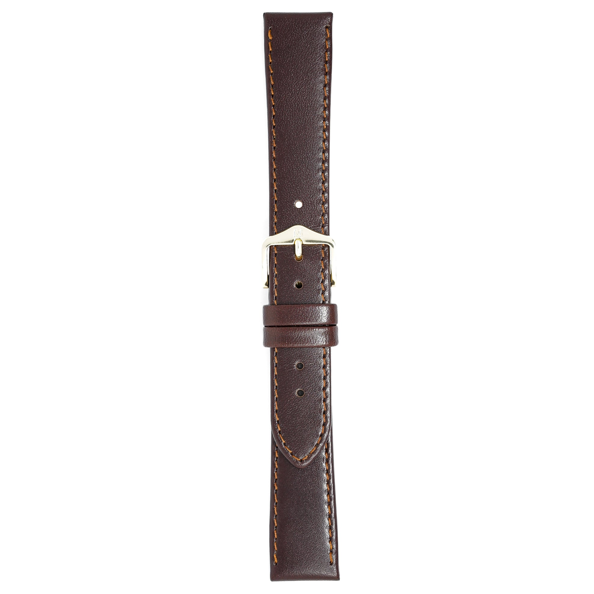 18mm width x 20cm Length Dark Brown Leather Strap with Brown Stitchings - Fitted With a Polished Gold Plated Stainless Steel Buckle.