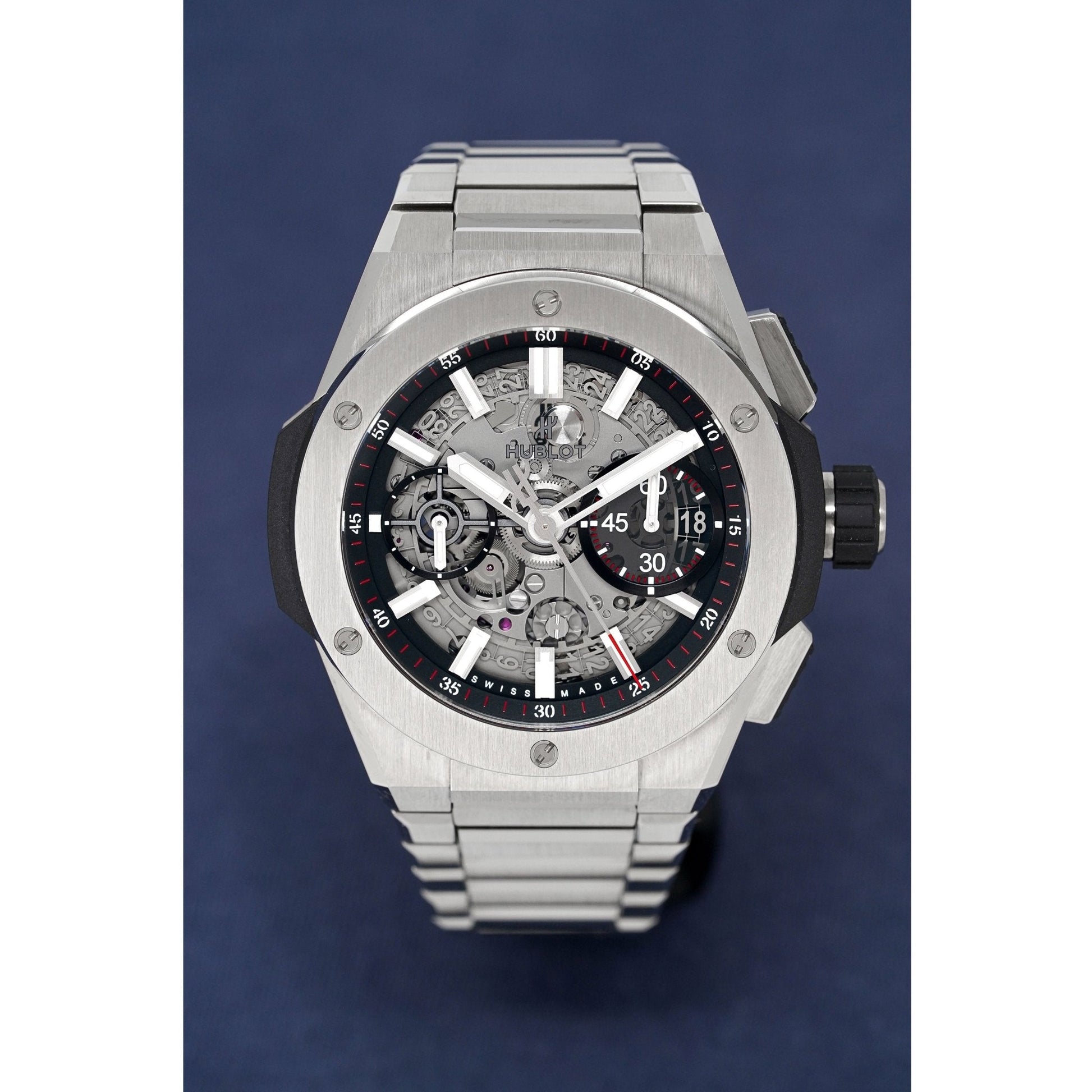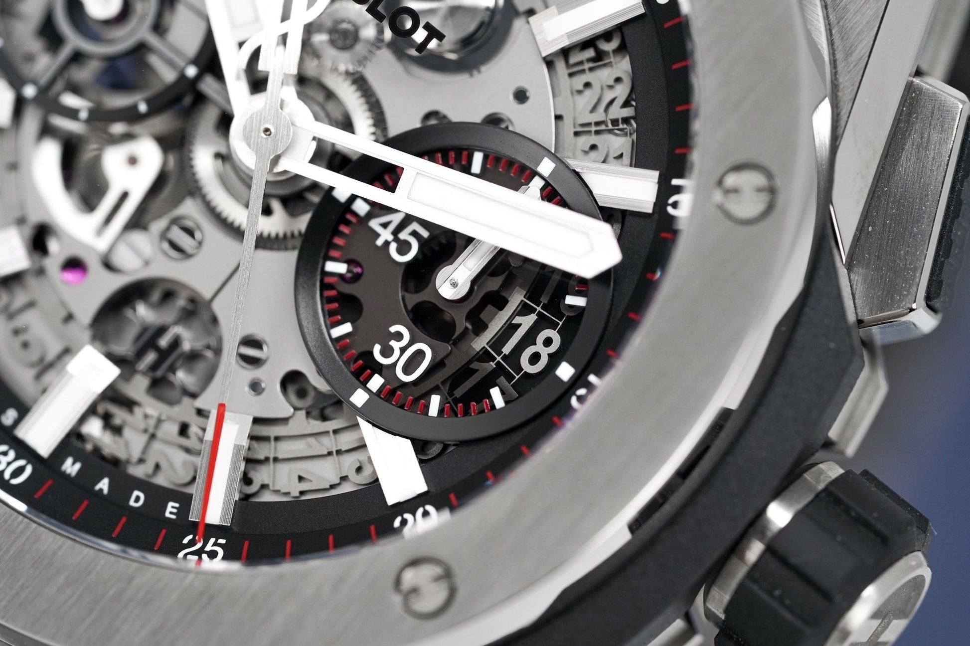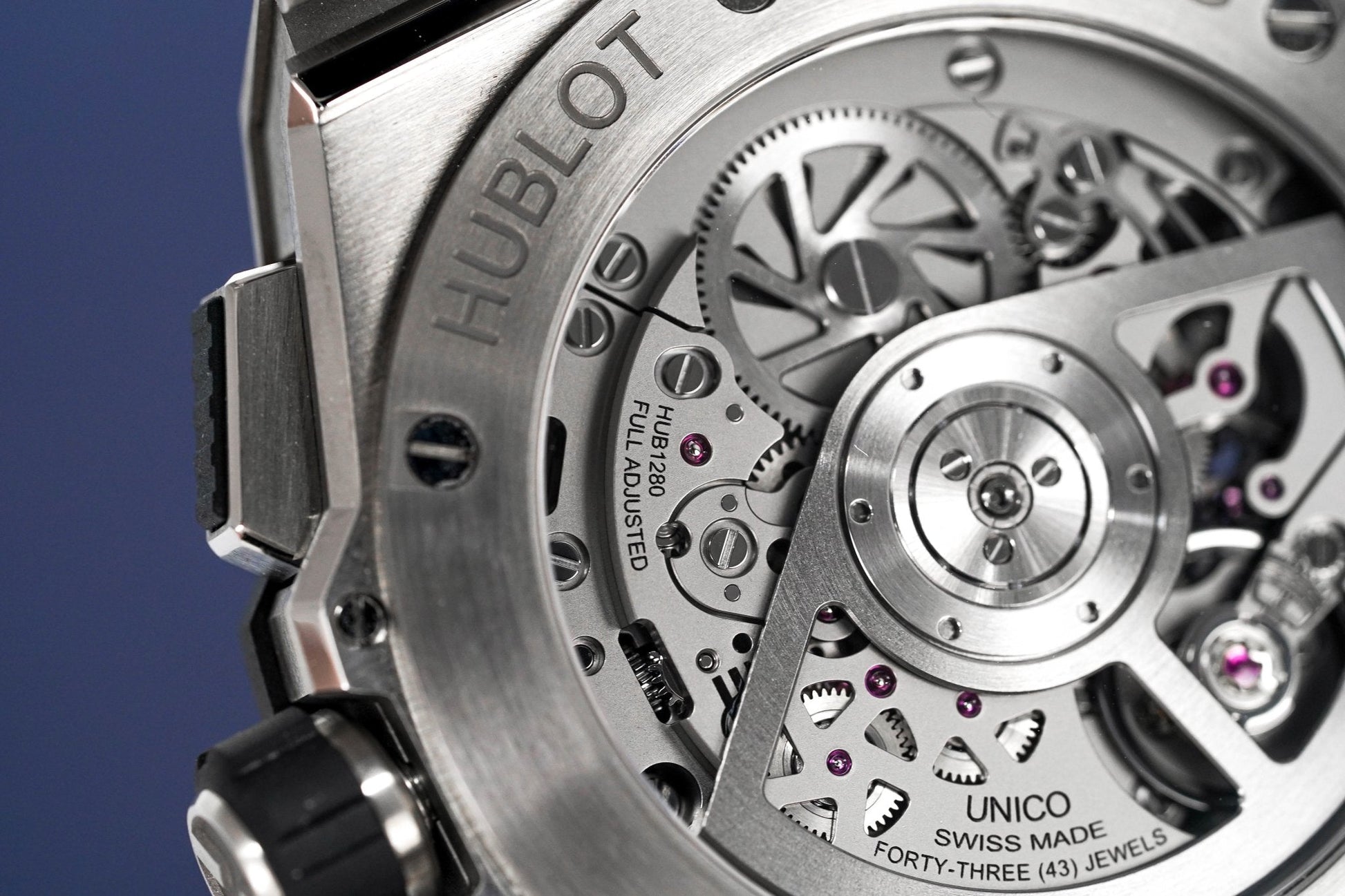 Swiss Made Automatic In-House Flyback Chronograph Movement. Caliber HUB1280. Power Reserve of 72 Hours. 43 Jewels. 28,800bph. Date. 60 Minutes, 12 Hour Counter.