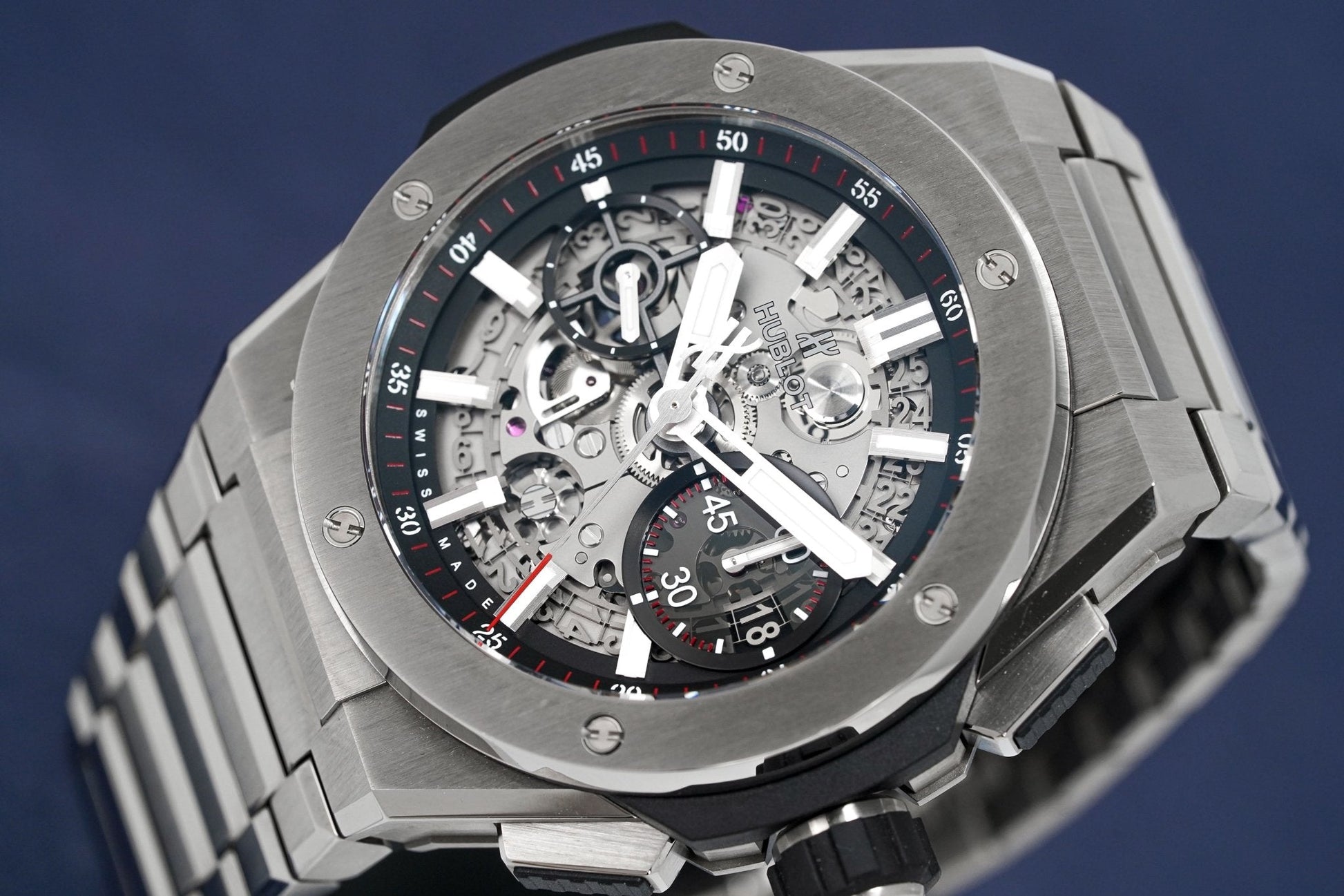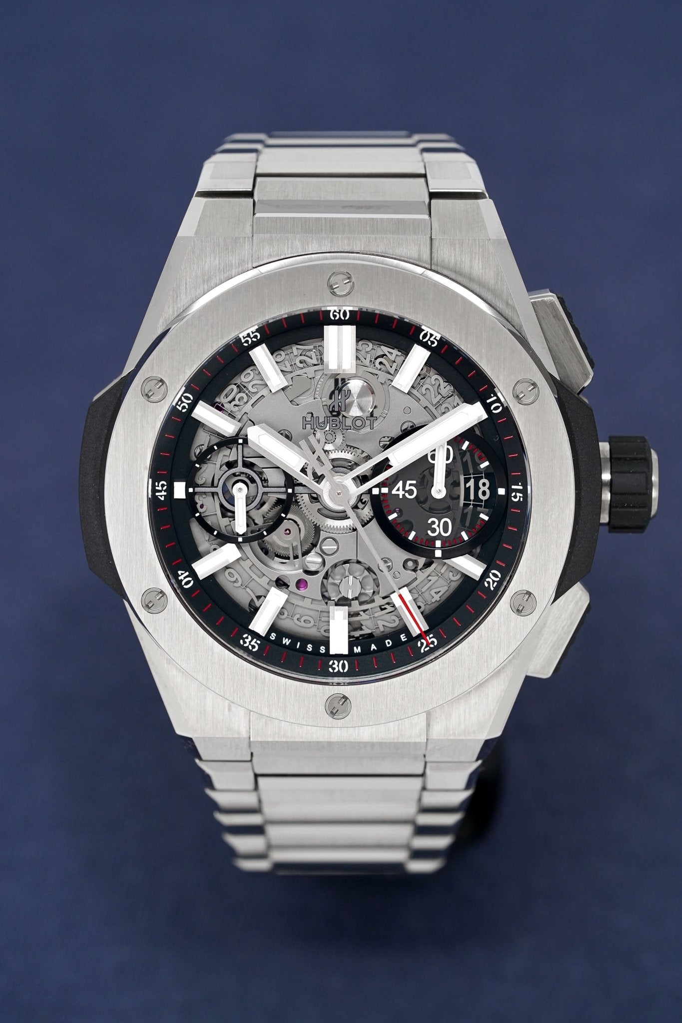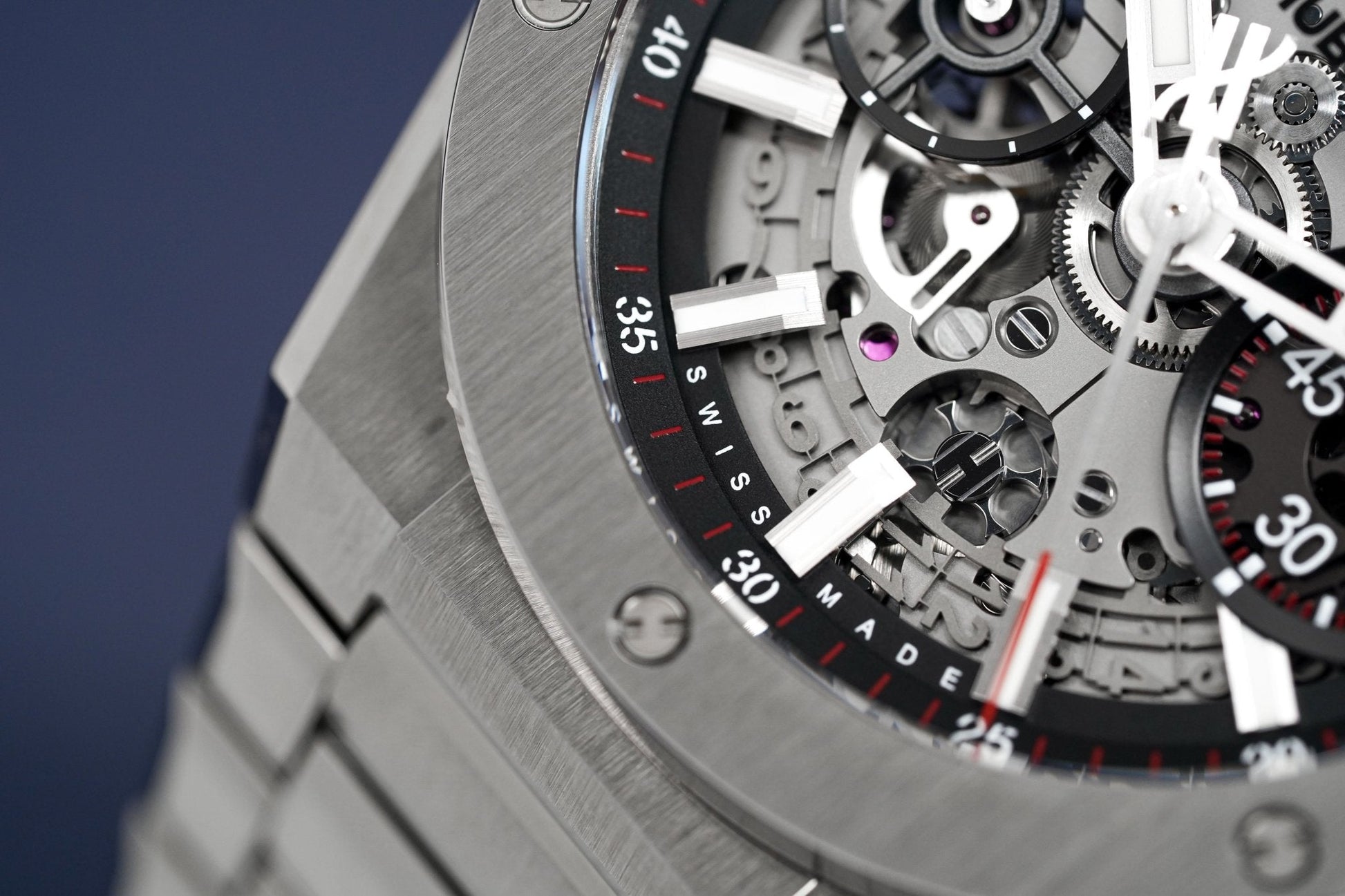 Swiss Made Automatic In-House Flyback Chronograph Movement. Caliber HUB1280. Power Reserve of 72 Hours. 43 Jewels. 28,800bph. Date. 60 Minutes, 12 Hour Counter.