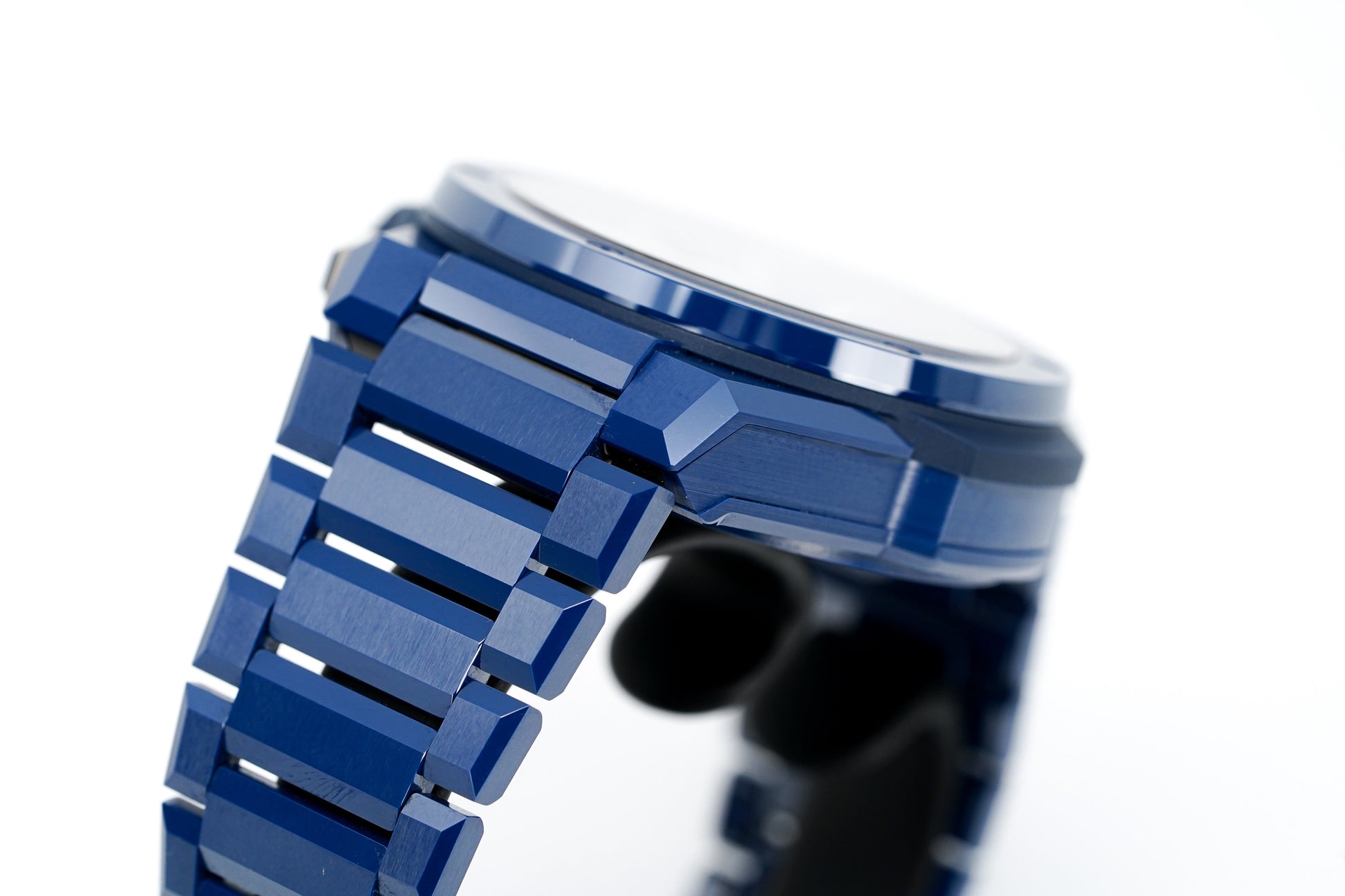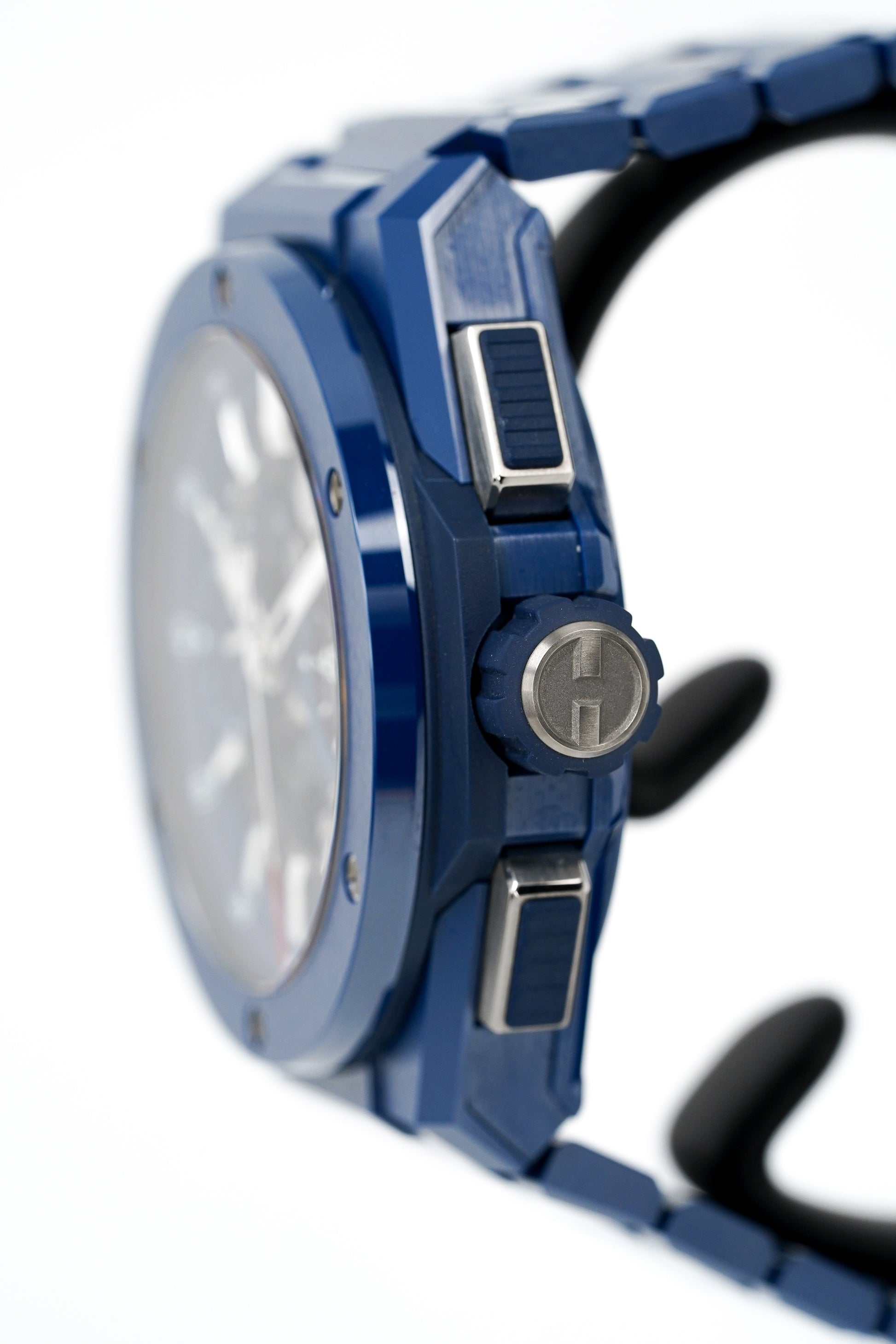 Blue Ceramic Bracelet with Push Button Deployment Clasp.