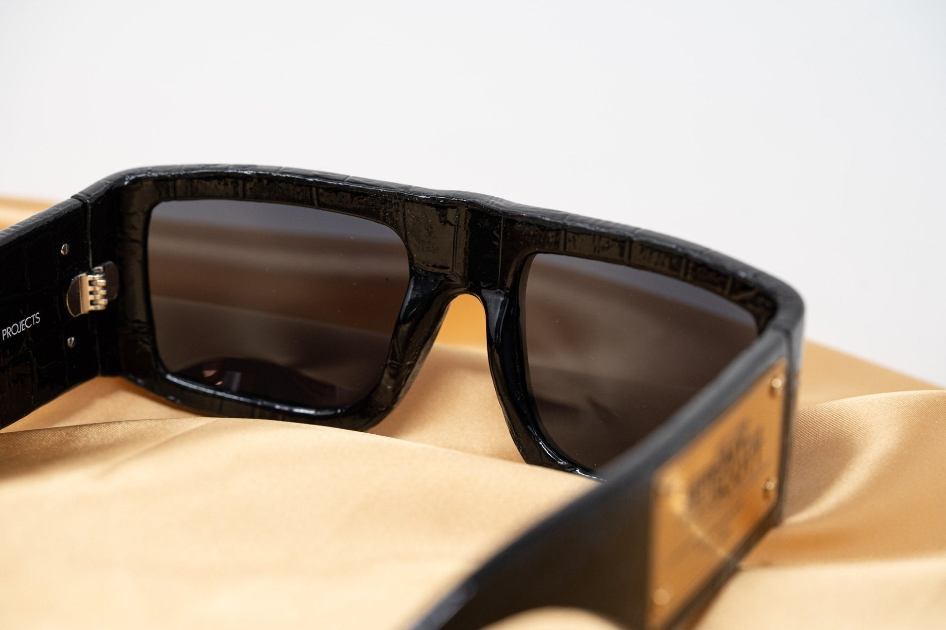 Frame/Temple Material: Faux Crocodile Leather Covered Acetate