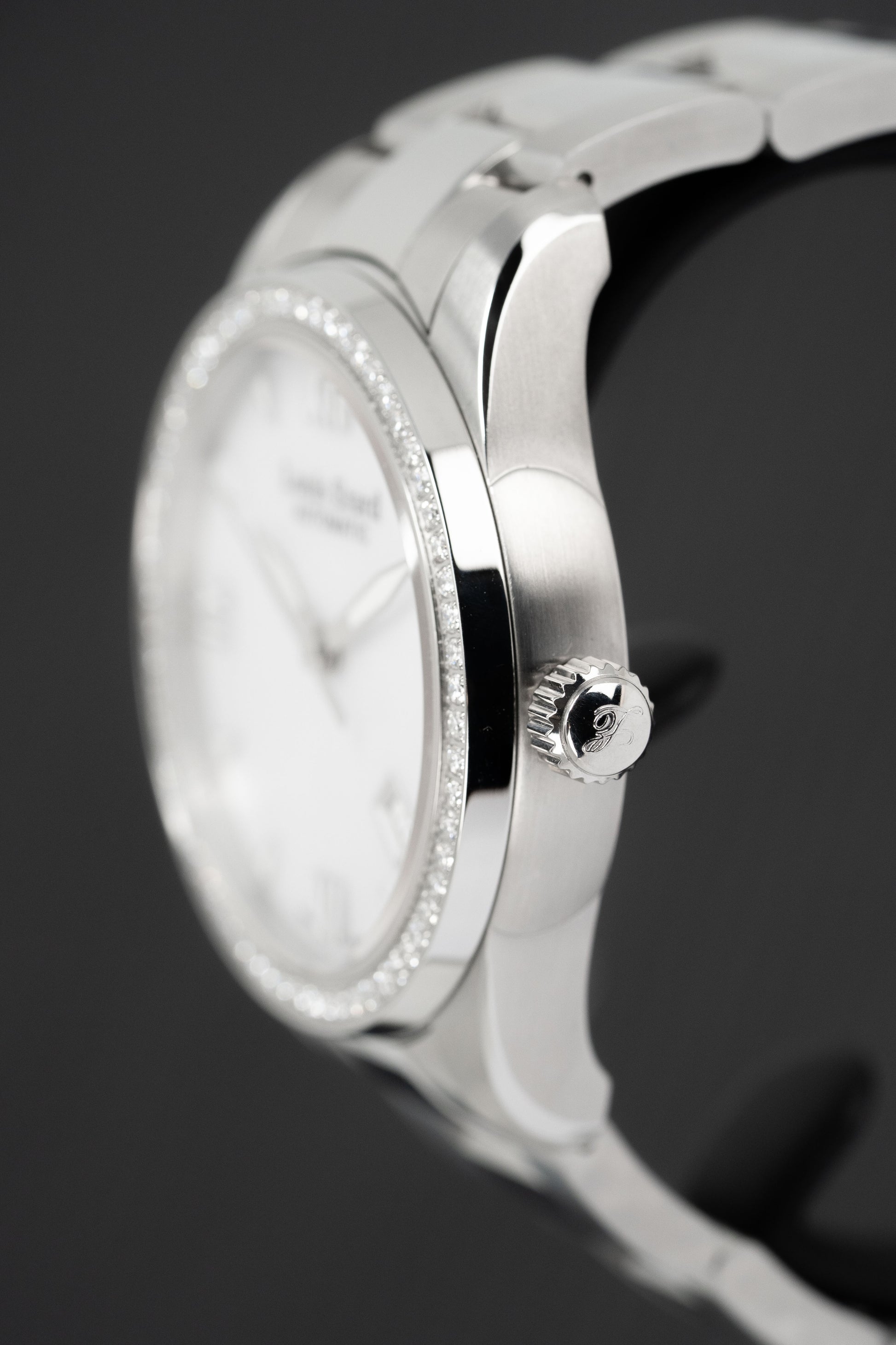 39.5mm x 11mm 316L Stainless Steel Case - Anti Reflective Sapphire Glass - Bezel set with 64 diamonds, apx 0.97 carat, Top Wesselton Colour (F-G), S-P1 Clarity - Exhibition Caseback - Push/Pull Crown.
