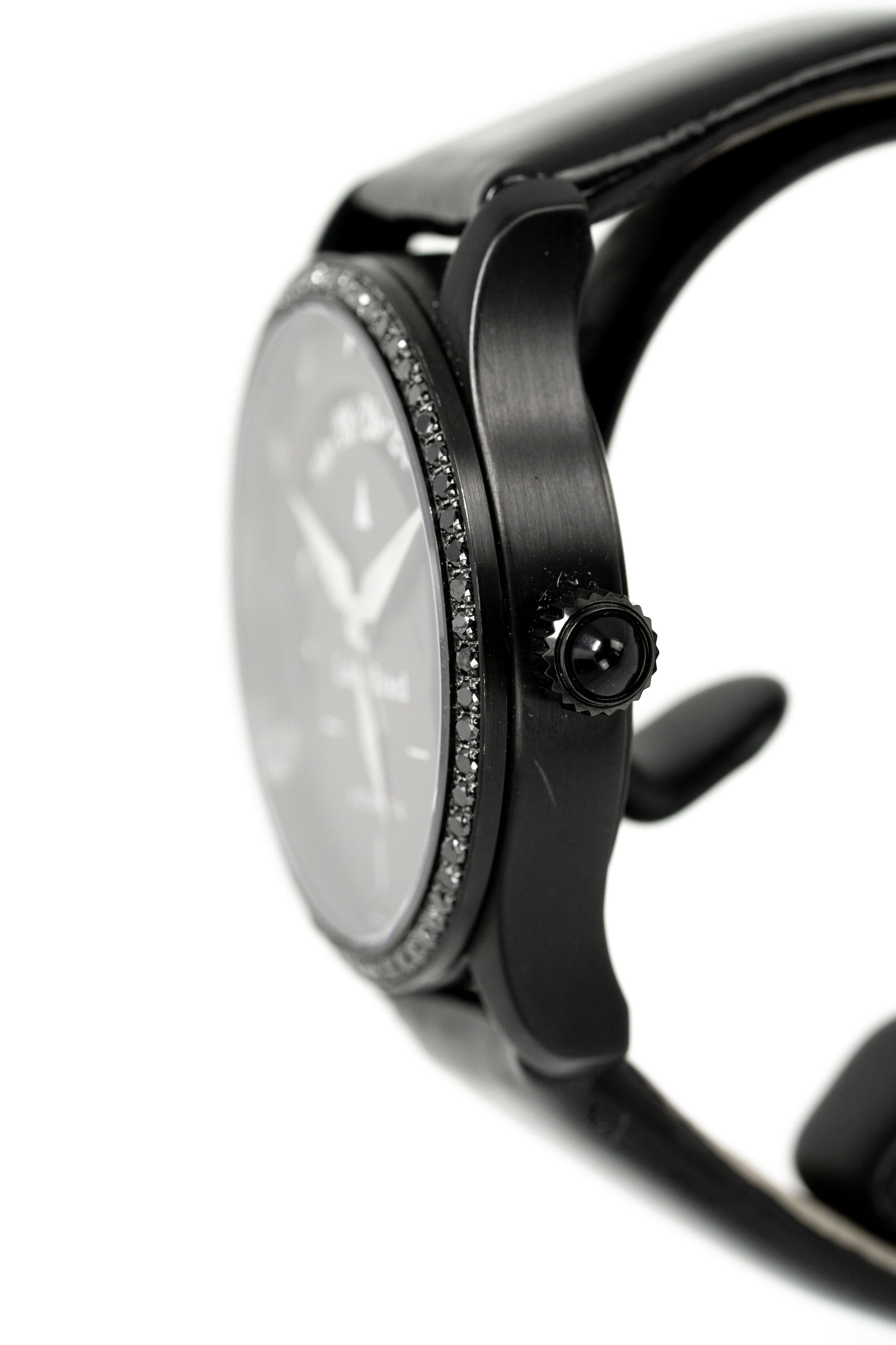 36mm x 10mm Black PVD 316L Stainless Steel Case - Anti Reflection Anti-Scratch Sapphire Glass - Solid Caseback - Push/Pull Crown - Bezel set with Black Diamonds.