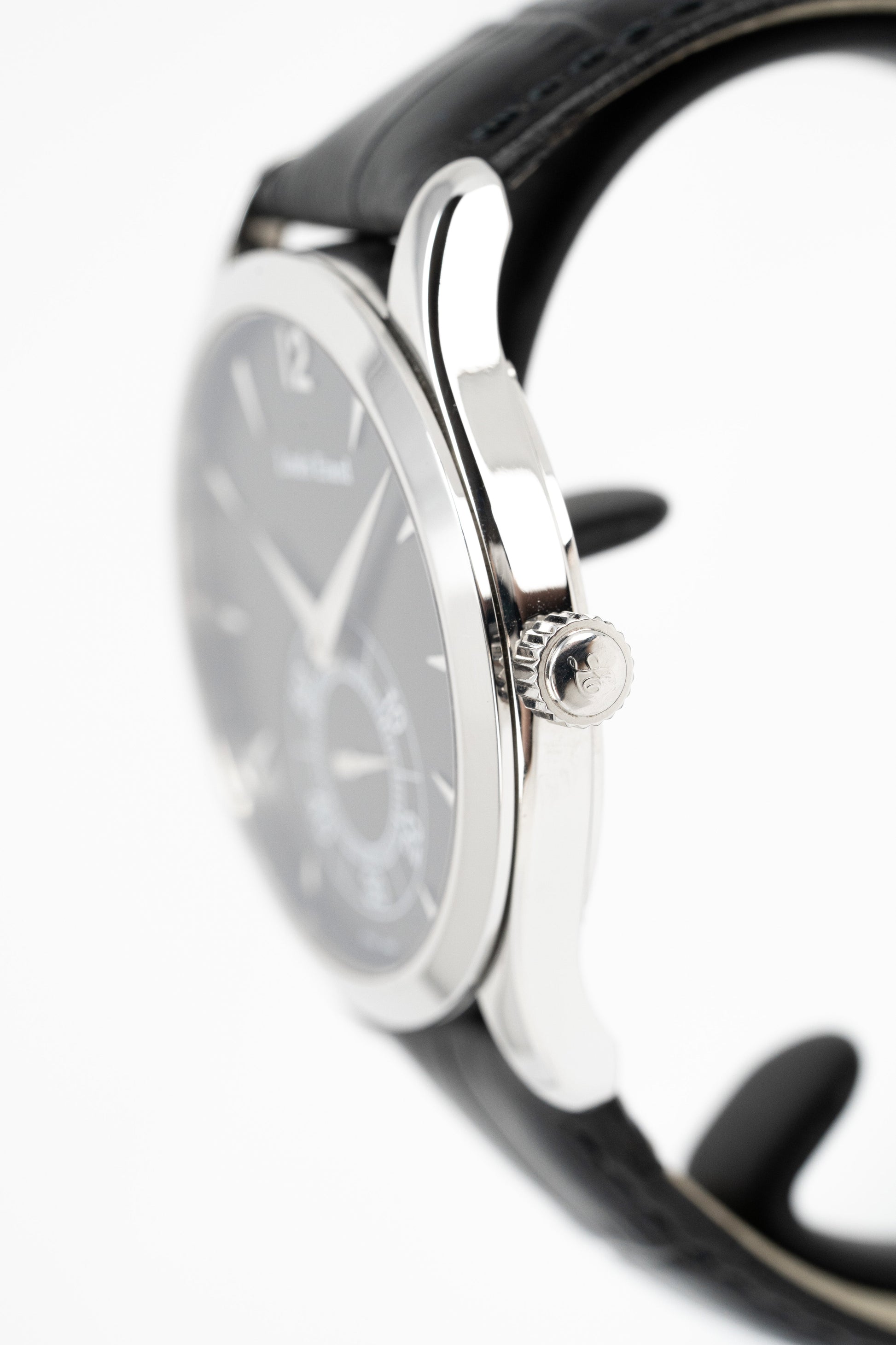 Black Dial with Sub-Seconds - Silver Applied Steel Hour, Minute and Second Hands - Silver Applied Roman Numeral and Baton Hour Indexes.