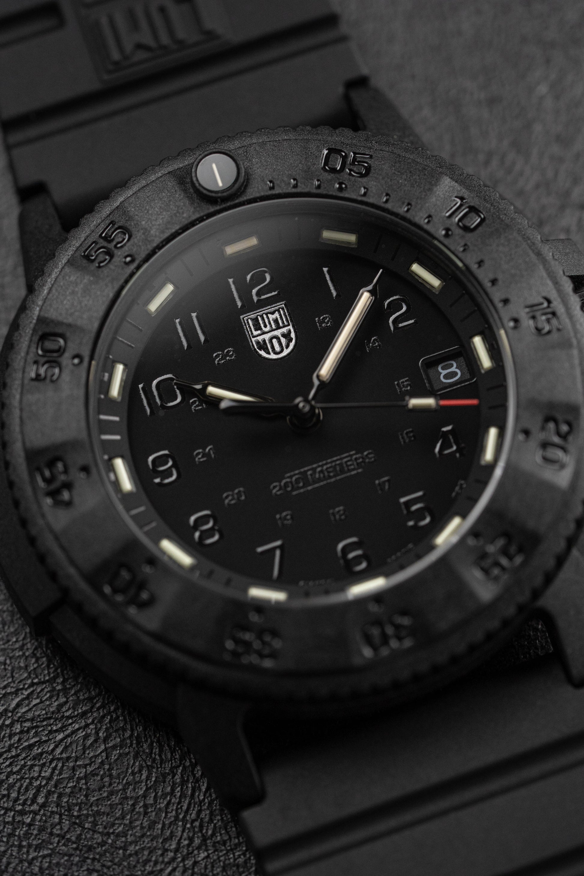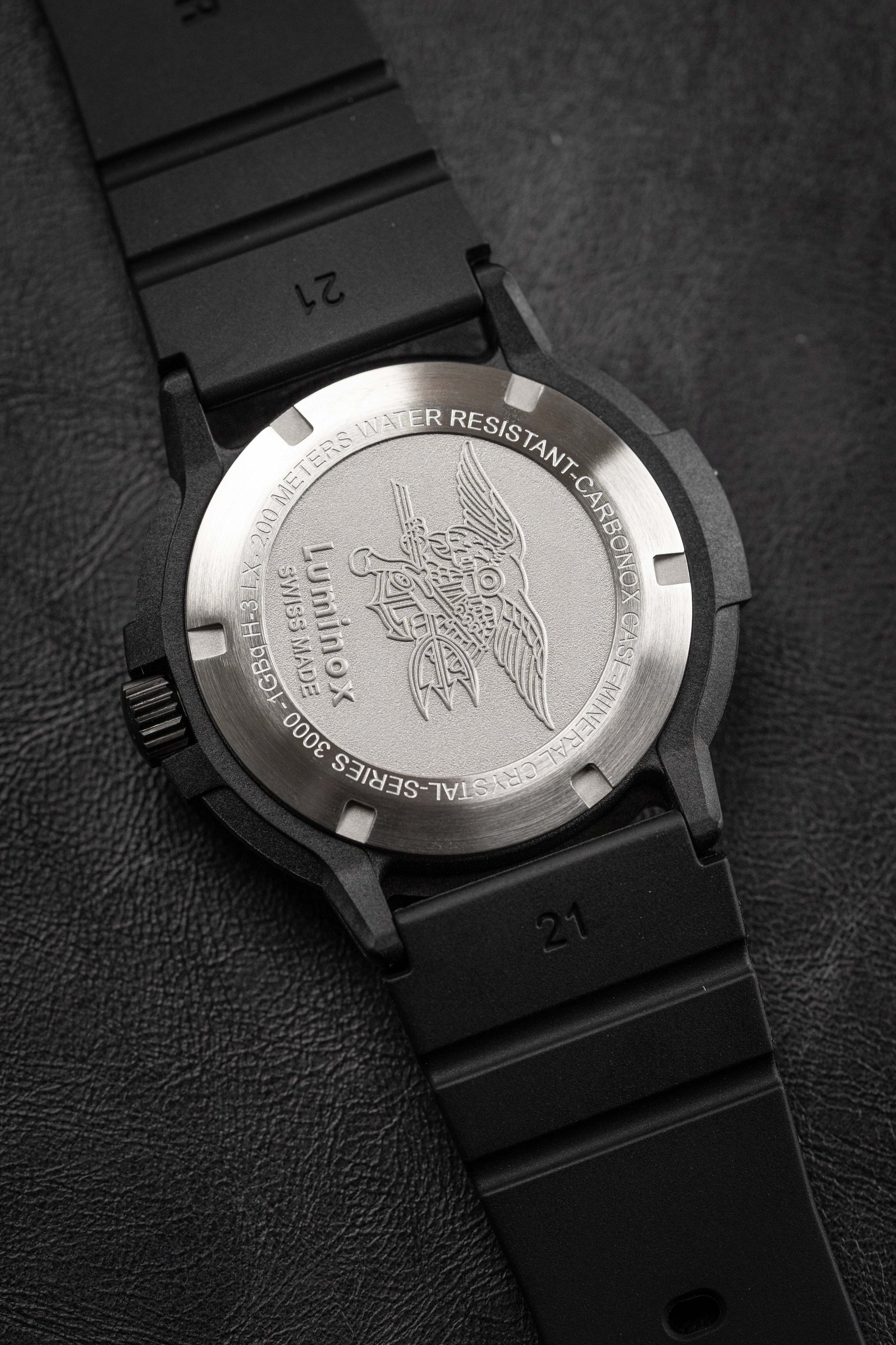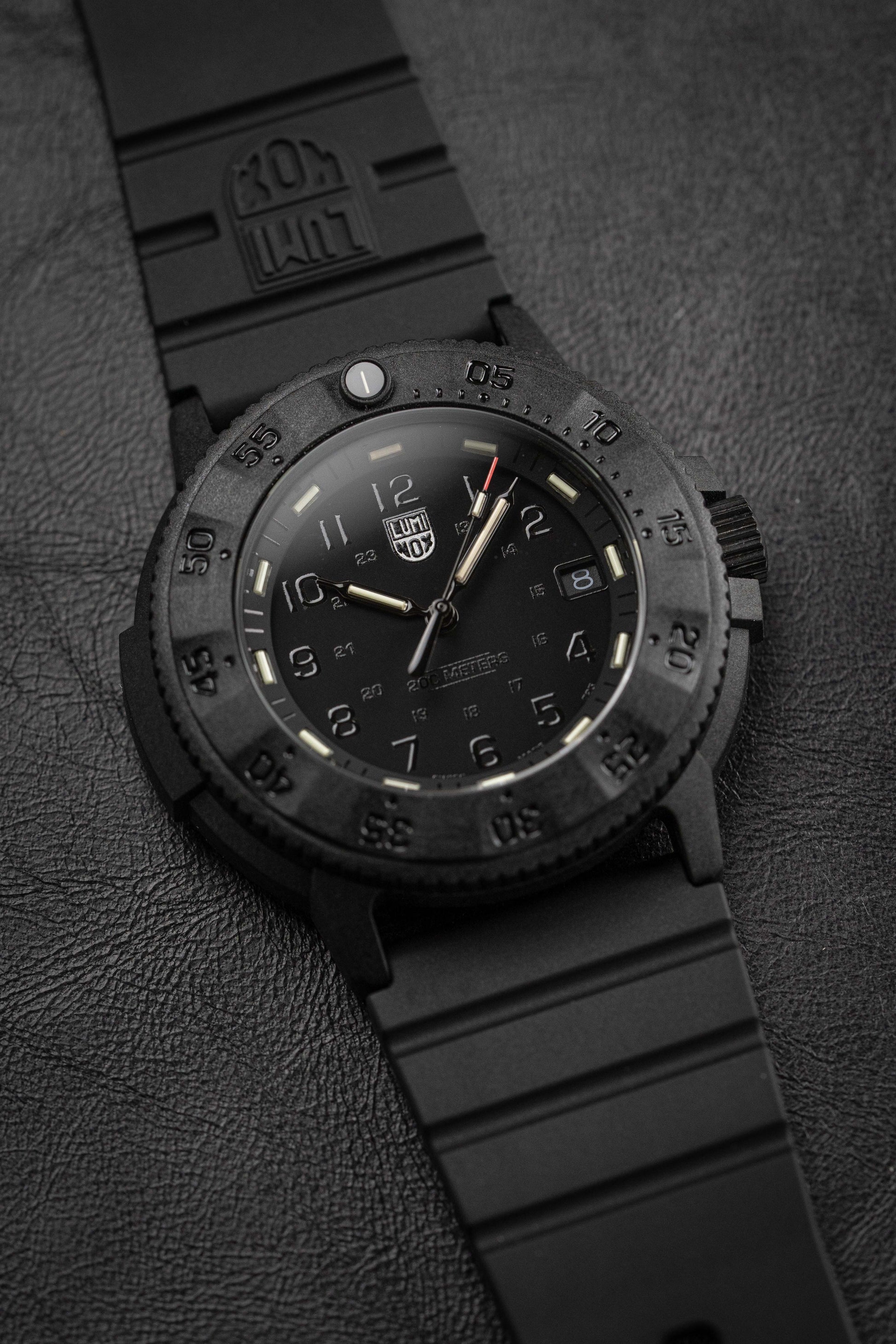 43mm x 13mm Black CARBONOX™ Case - Scratch-Resistant and Anti-Reflective Hardened Mineral Crystal - Uni-Directional Rotating Bezel - Screw Down Crown with Protection - Solid Caseback.