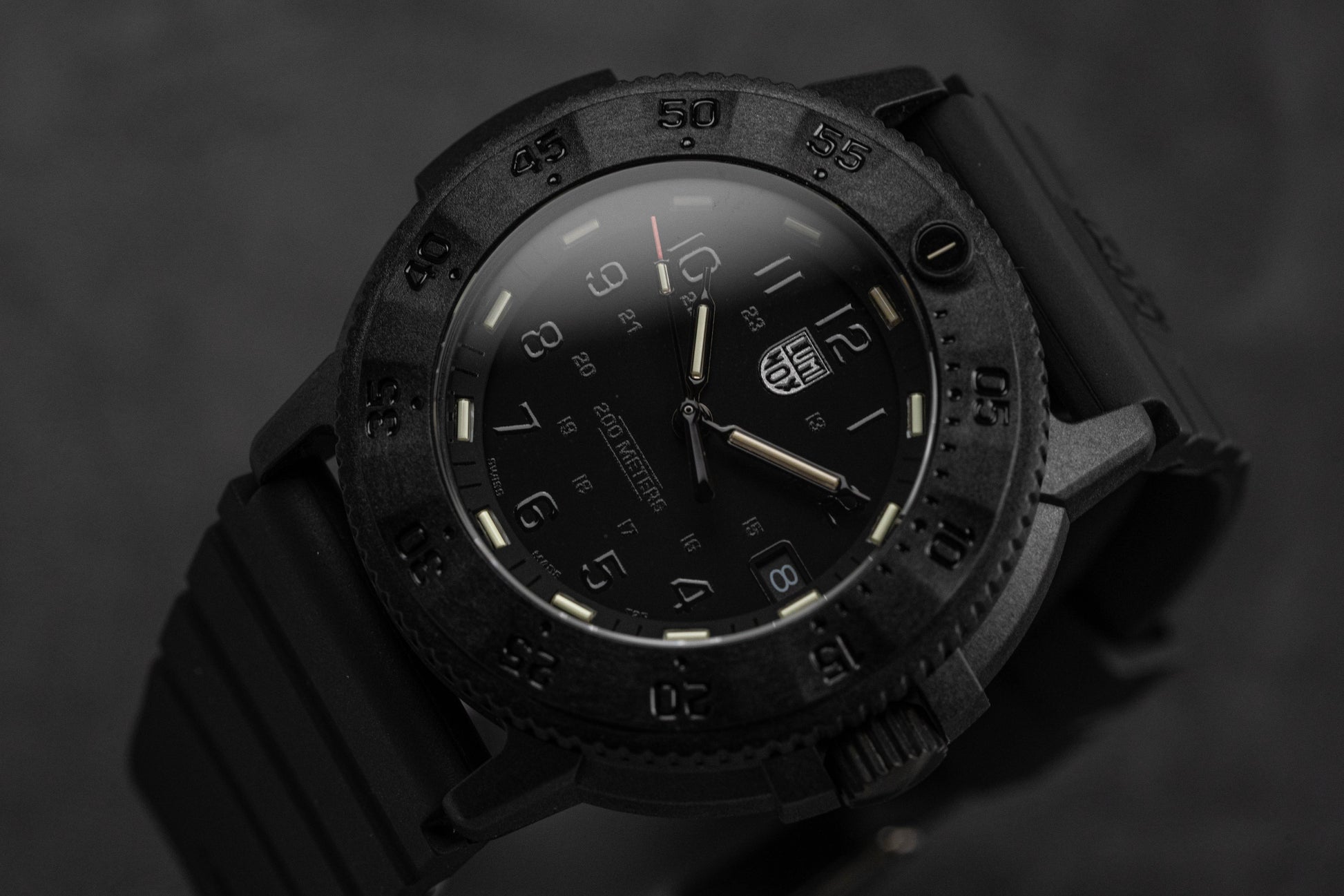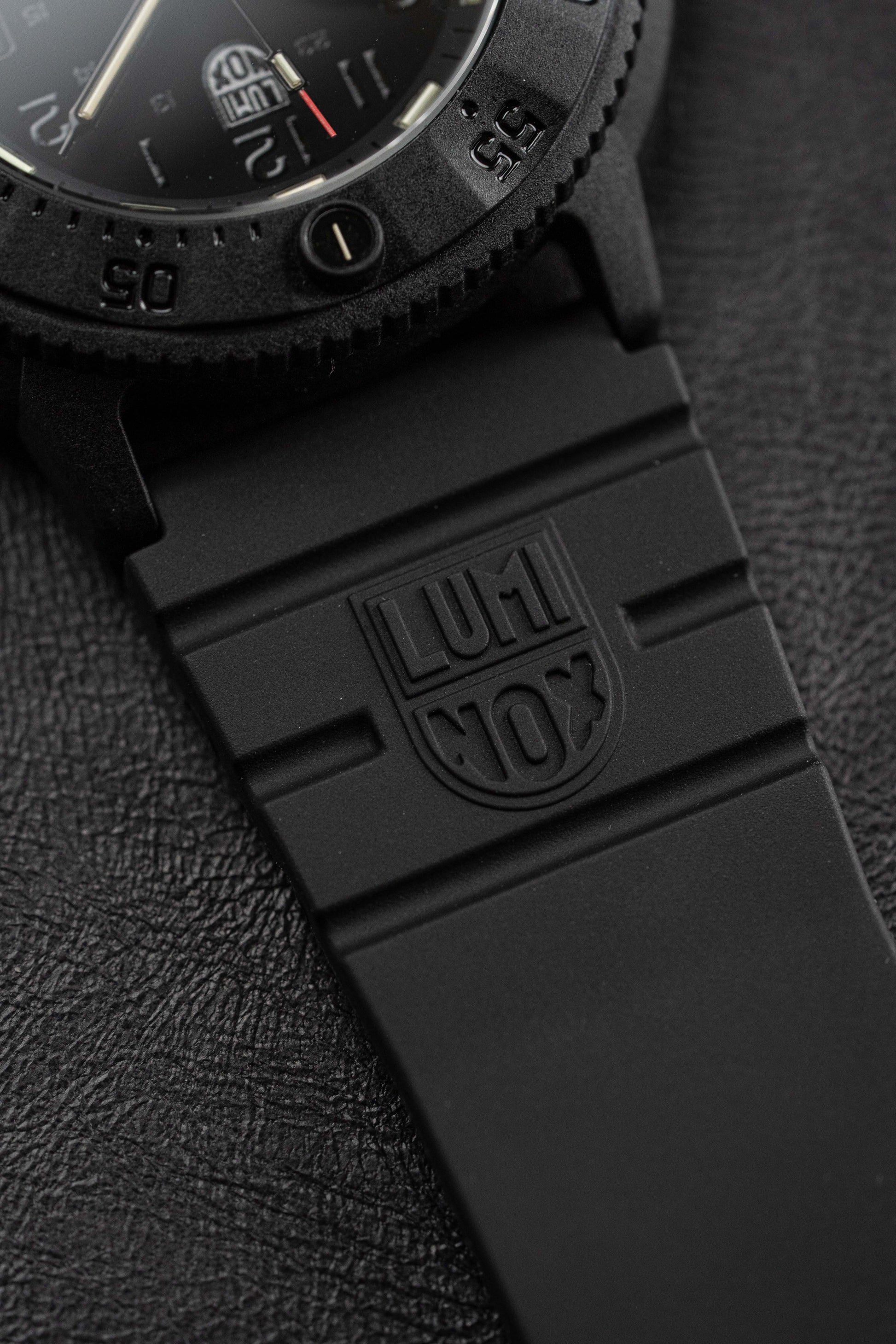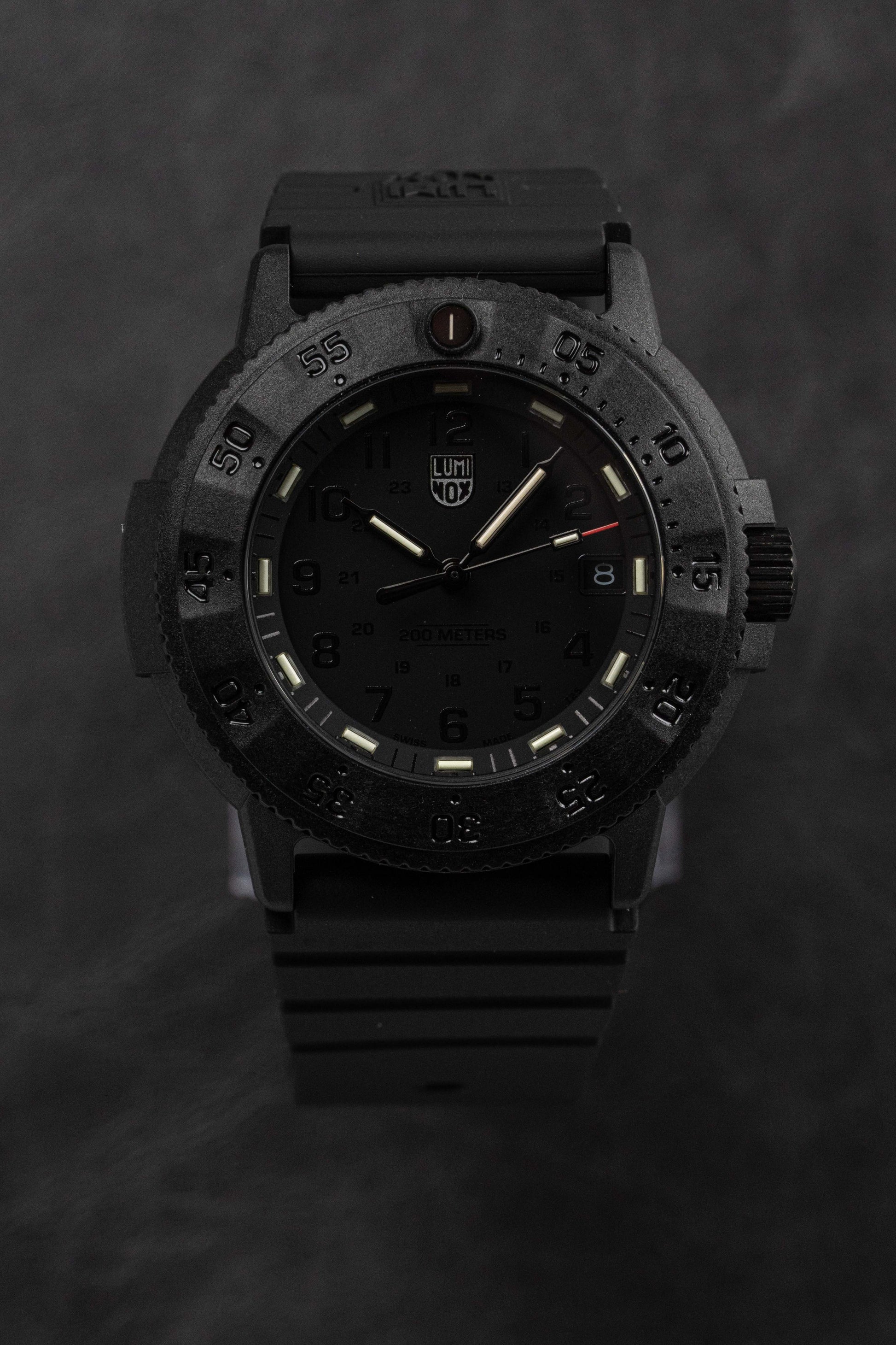 43mm x 13mm Black CARBONOX™ Case - Scratch-Resistant and Anti-Reflective Hardened Mineral Crystal - Uni-Directional Rotating Bezel - Screw Down Crown with Protection - Solid Caseback.