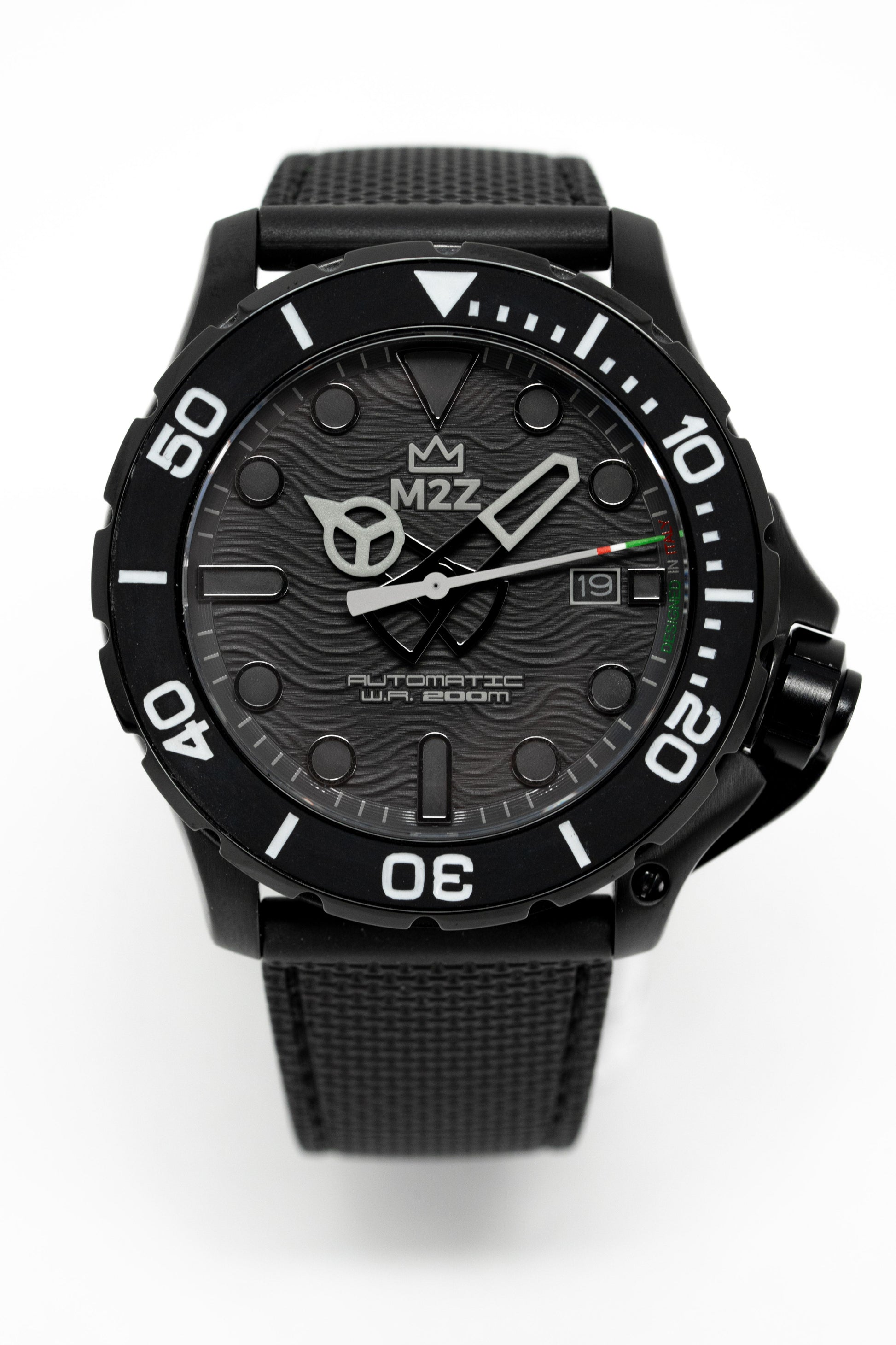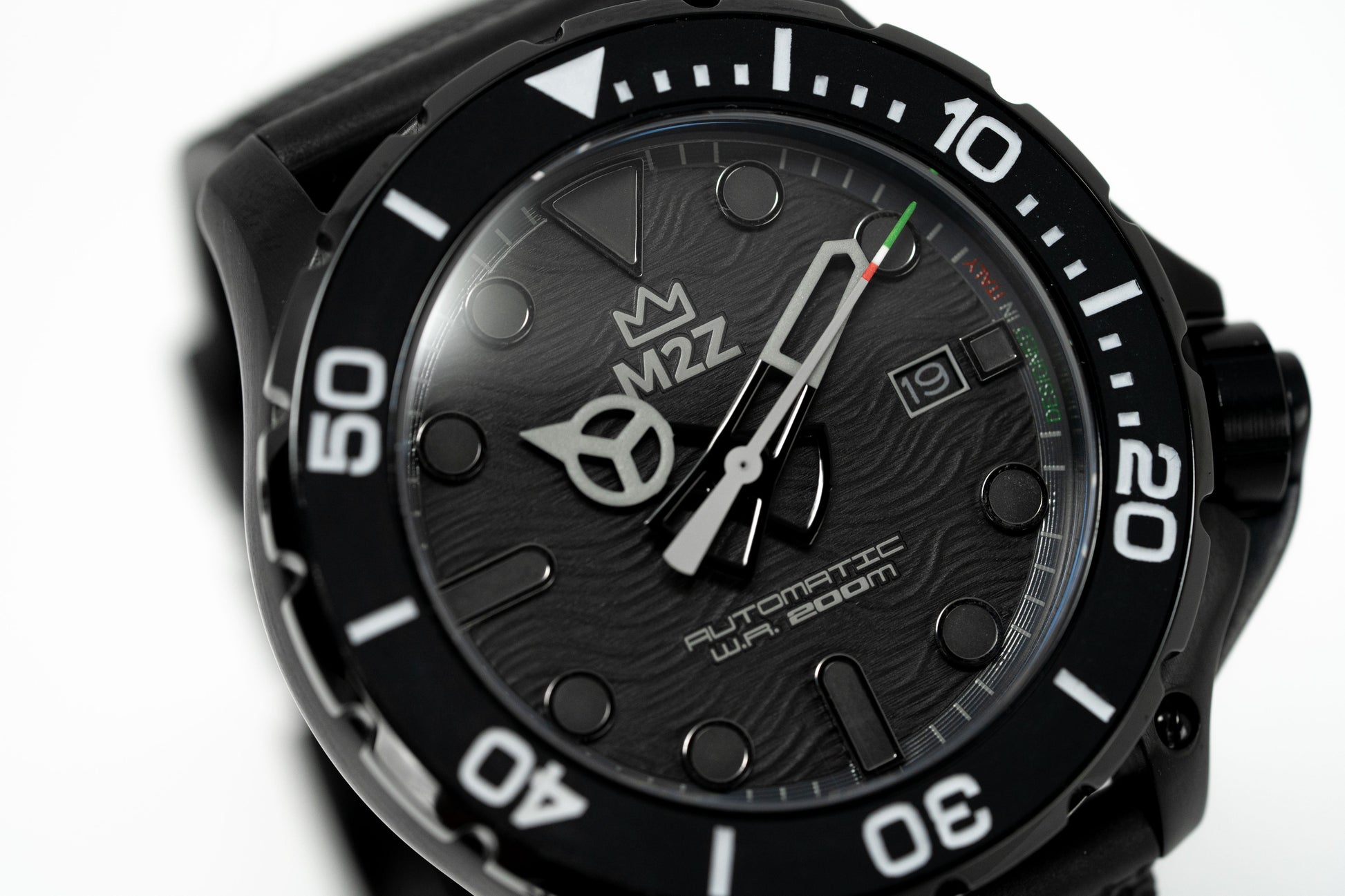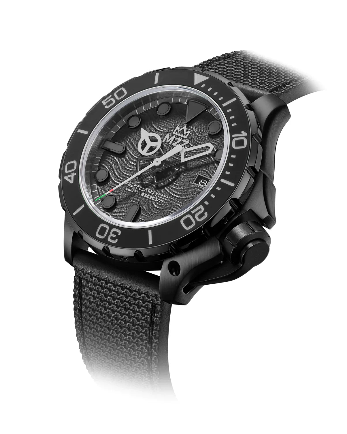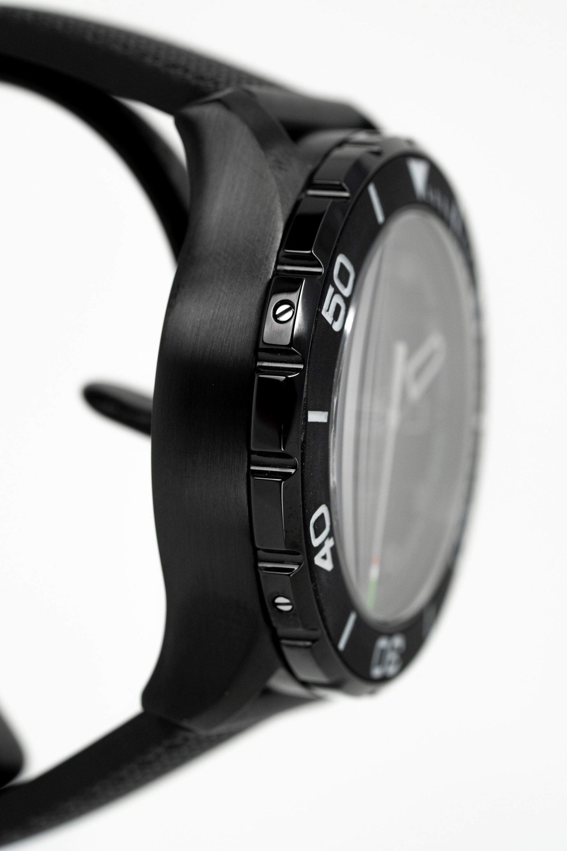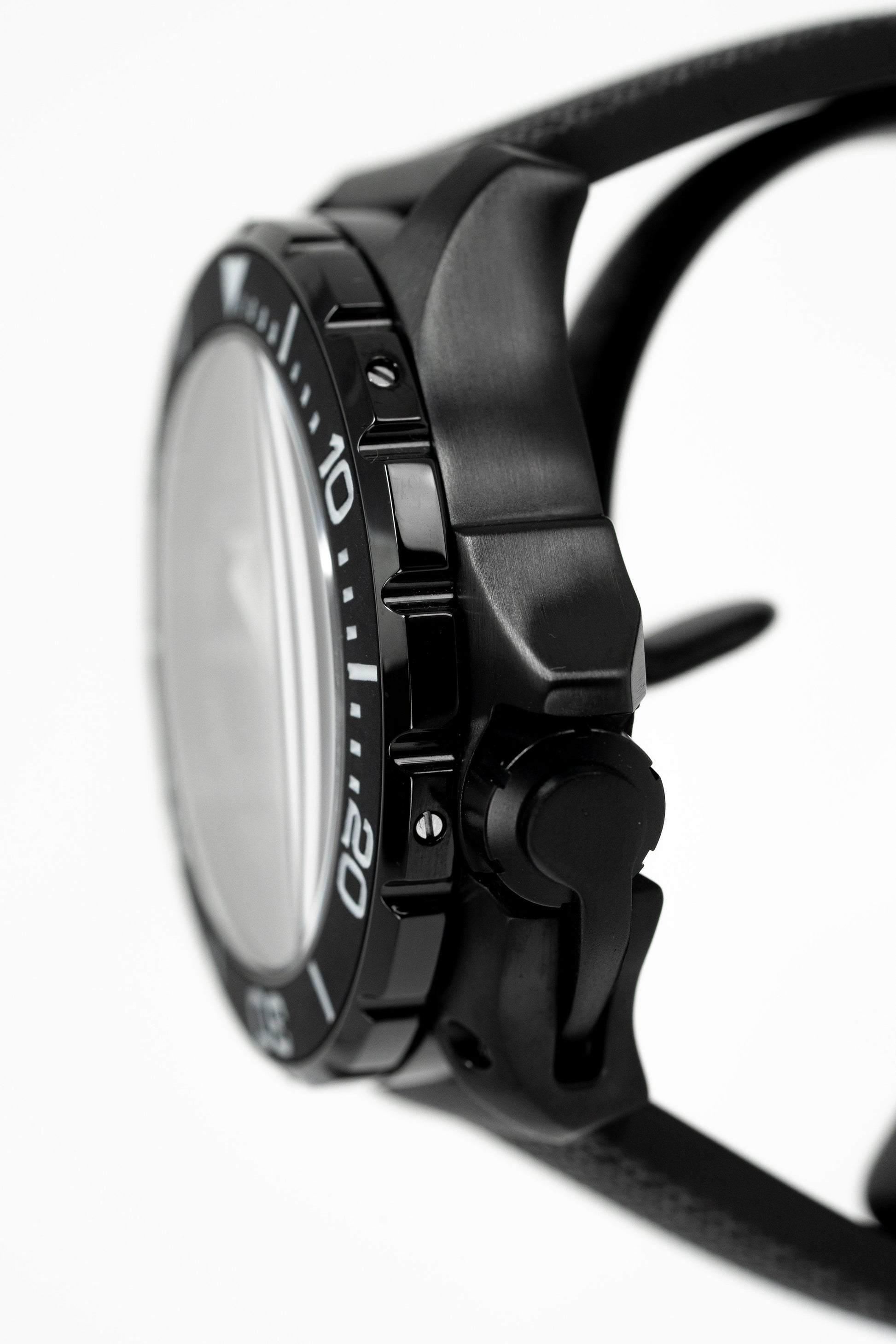 46mm x 17mm Mono-Block Black IP Plated 316L Stainless Steel Case - Unidirectional Anti-Clockwise, Rotating Bezel with Black Hypoallergenic Polymer Insert FKM - Screw-Down Crown with Double Ring Removable Black Crown Protector - Sapphire Crystal Class - Solid Caseback.