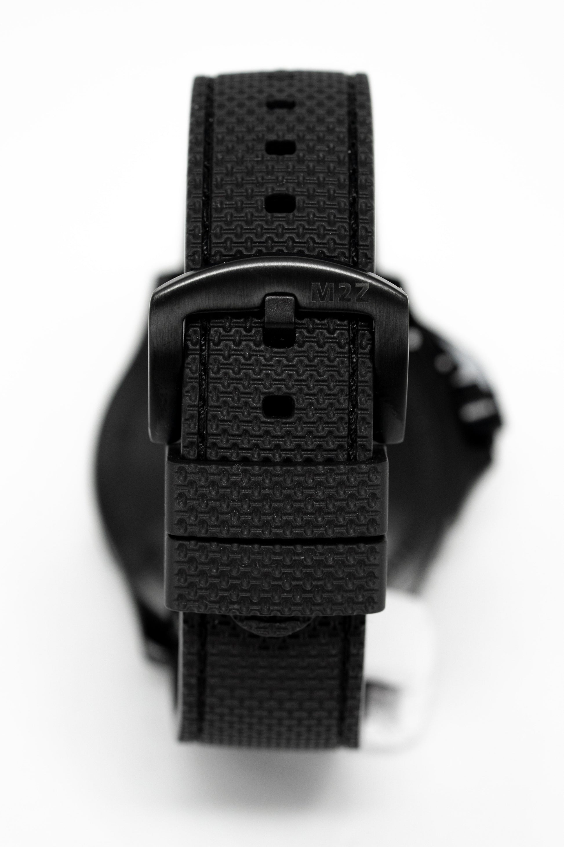 18cm x 20/24mm Black Hypoallergenic Polymer FKM Strap with 316L Stainless Steel Pin Buckle.