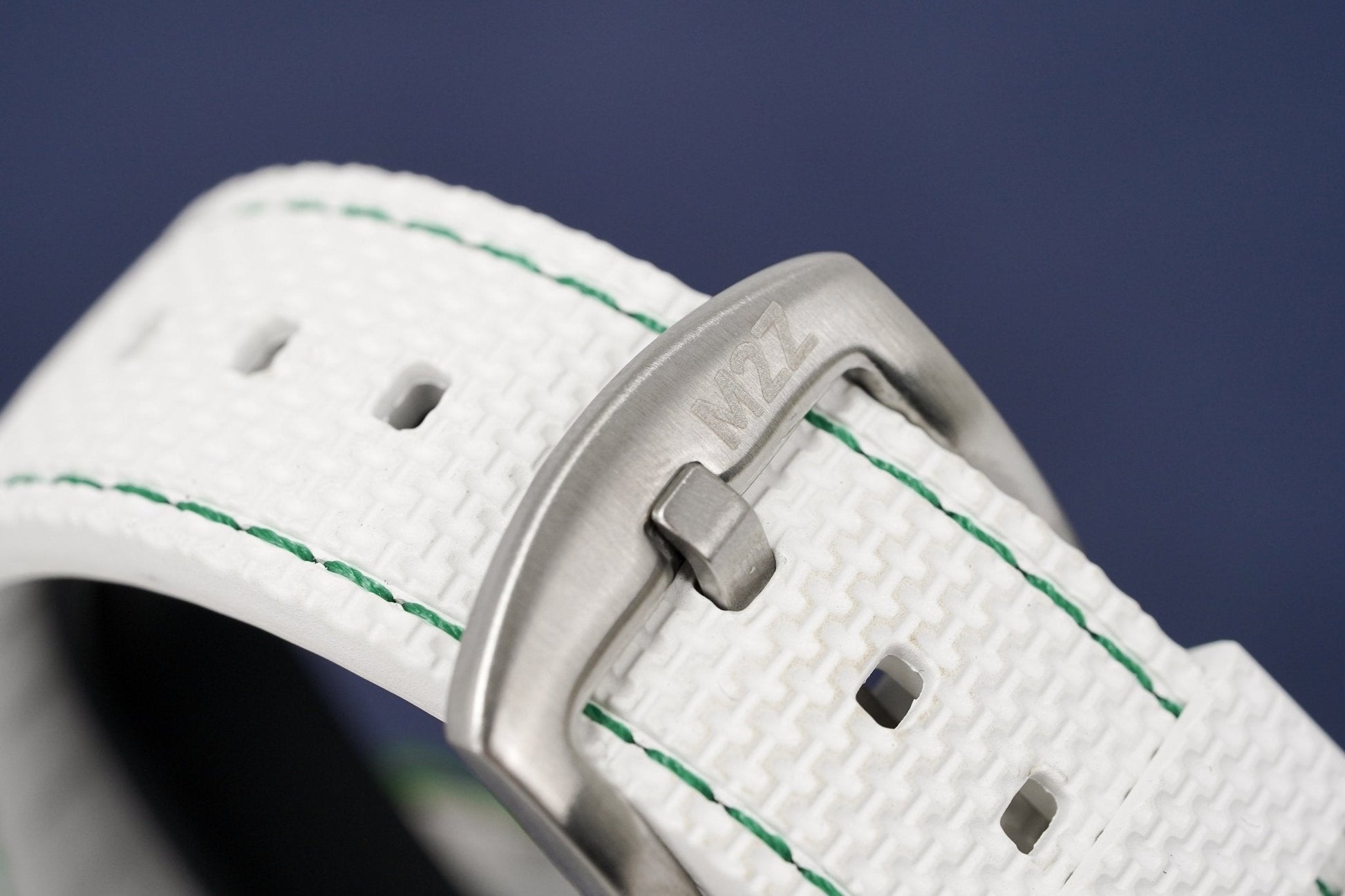 18cm x 20/24mm White Hypoallergenic Polymer FKM Strap with 316L Stainless Steel Pin Buckle.