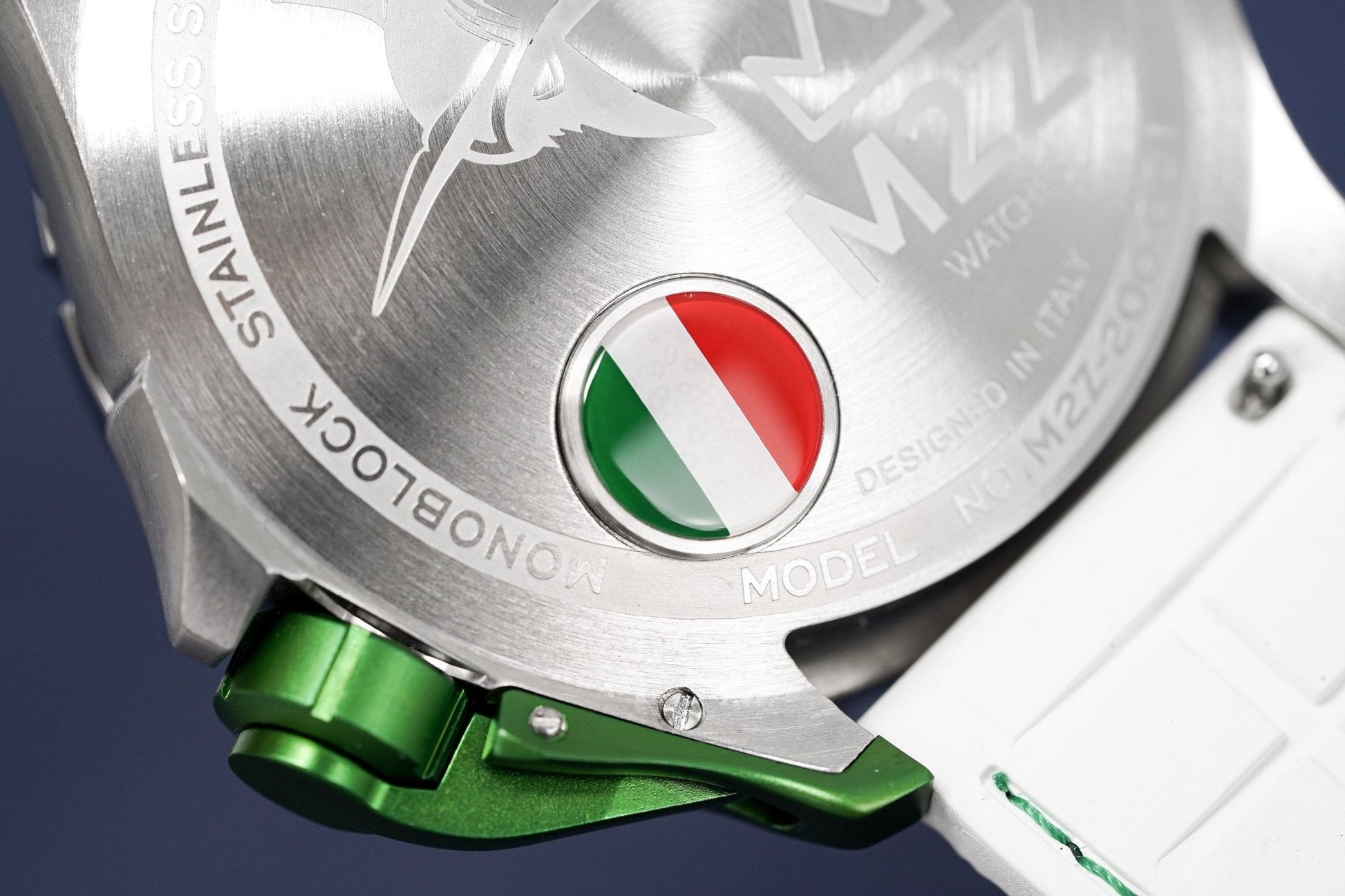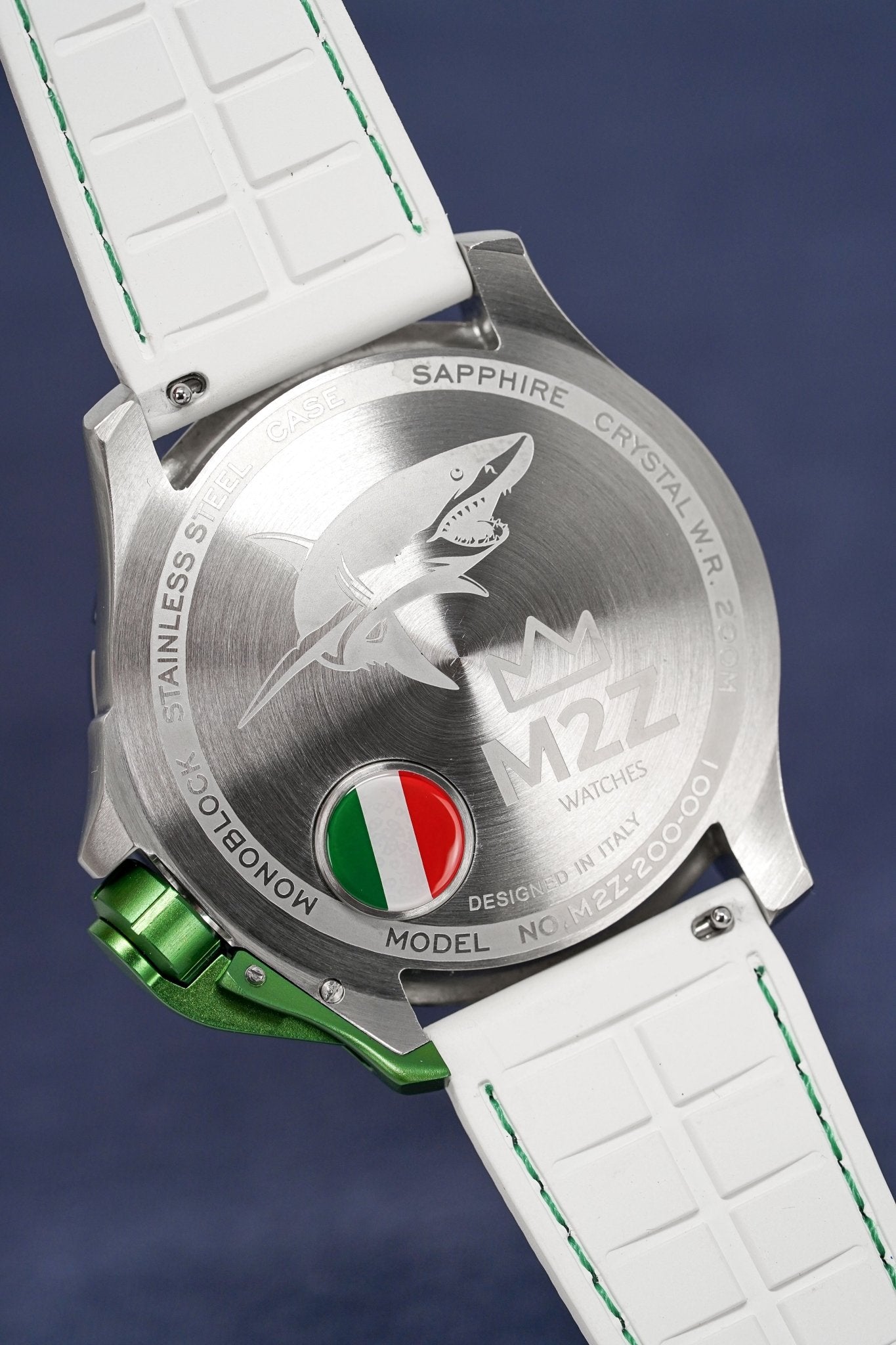 46mm x 17mm Mono-Block 316L Stainless Steel Case - Unidirectional Anti-Clockwise, Rotating Bezel with Green Hypoallergenic Polymer Insert FKM - Screw-Down Crown with Double Ring Removable Green Crown Protector - Sapphire Crystal Class - Solid Caseback.