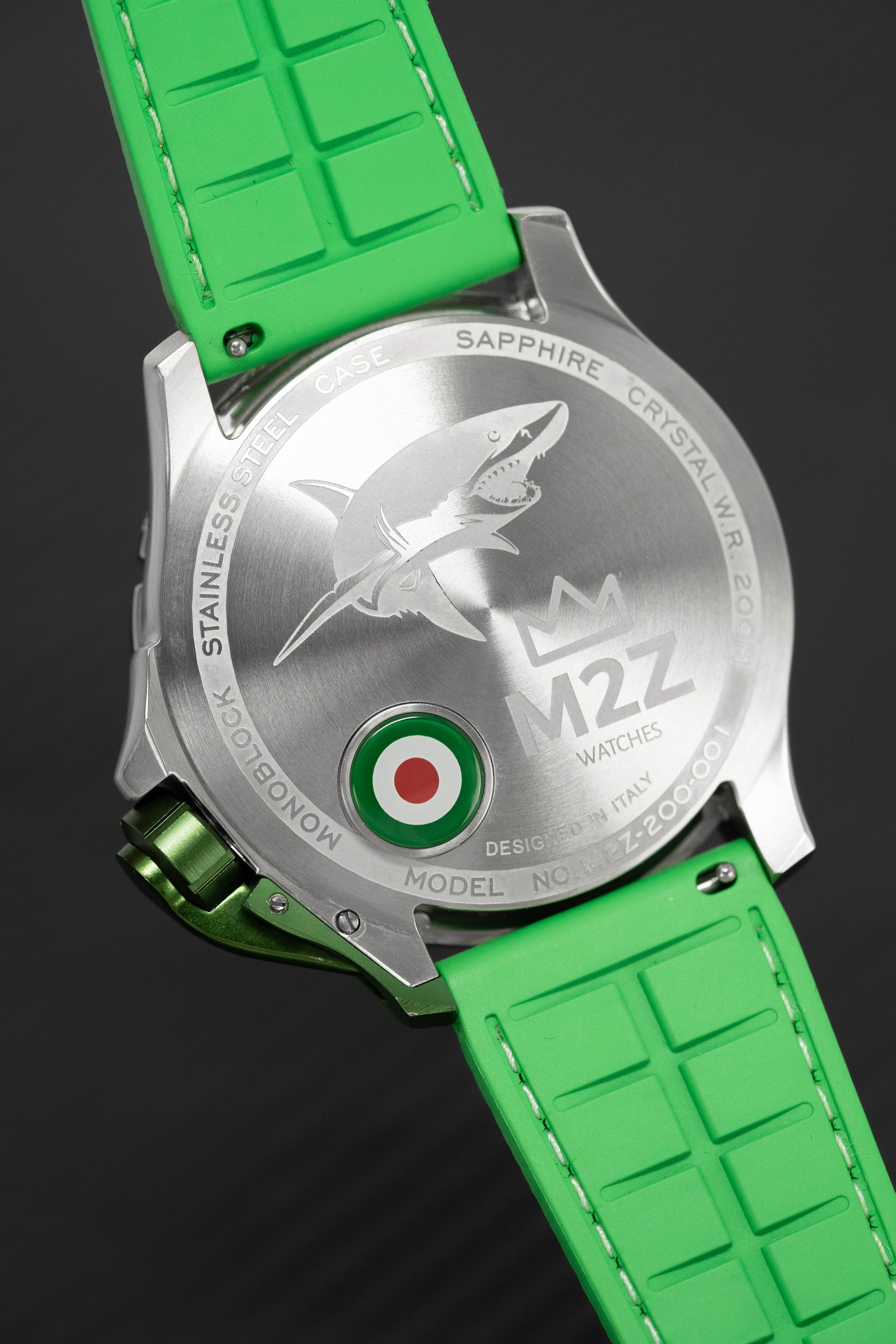 46mm x 17mm Mono-Block 316L Stainless Steel Case - Unidirectional Anti-Clockwise, Rotating Bezel with Green Hypoallergenic Polymer Insert FKM - Screw-Down Crown with Double Ring Removable Green Crown Protector - Sapphire Crystal Class - Solid Caseback.