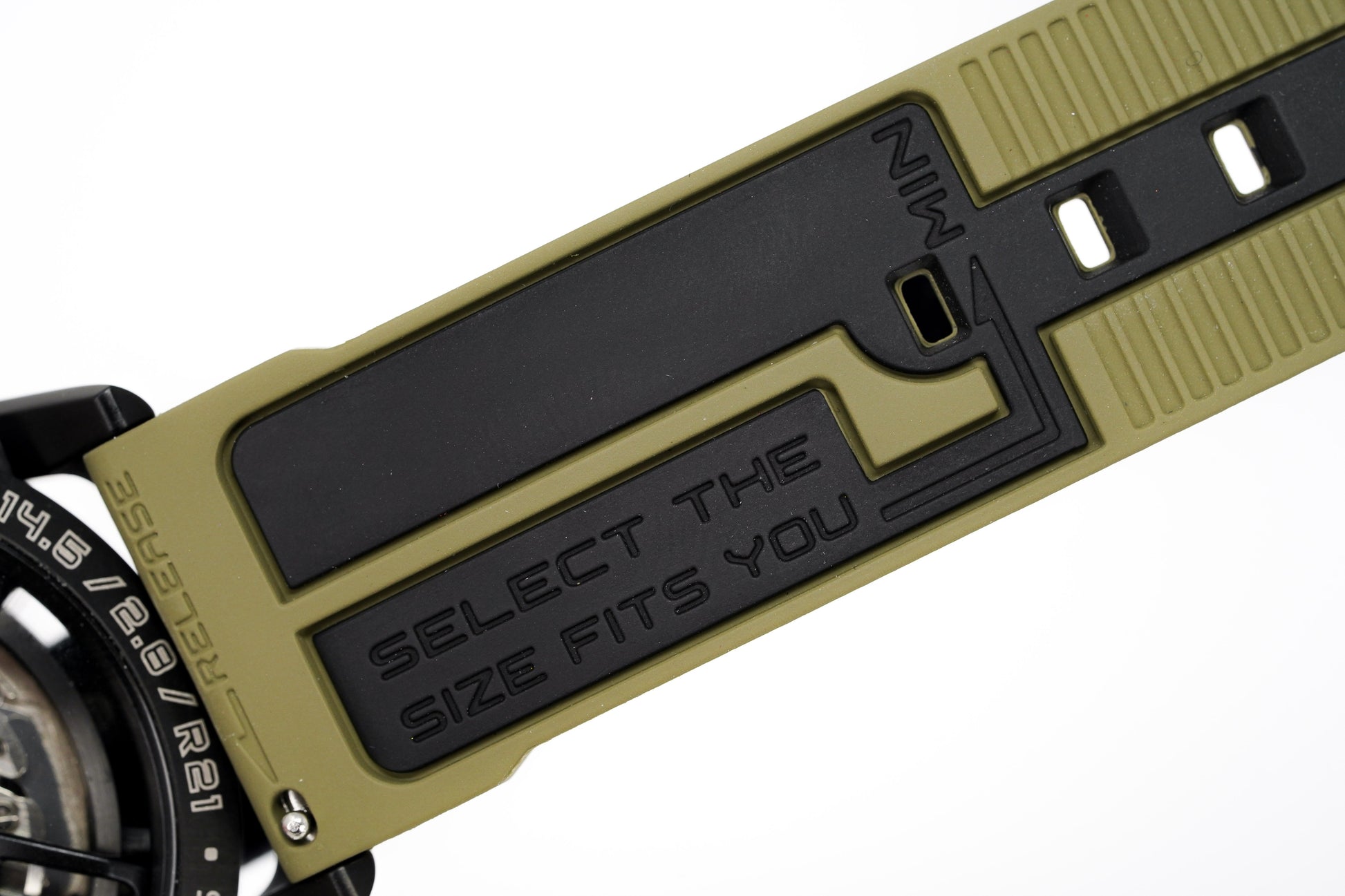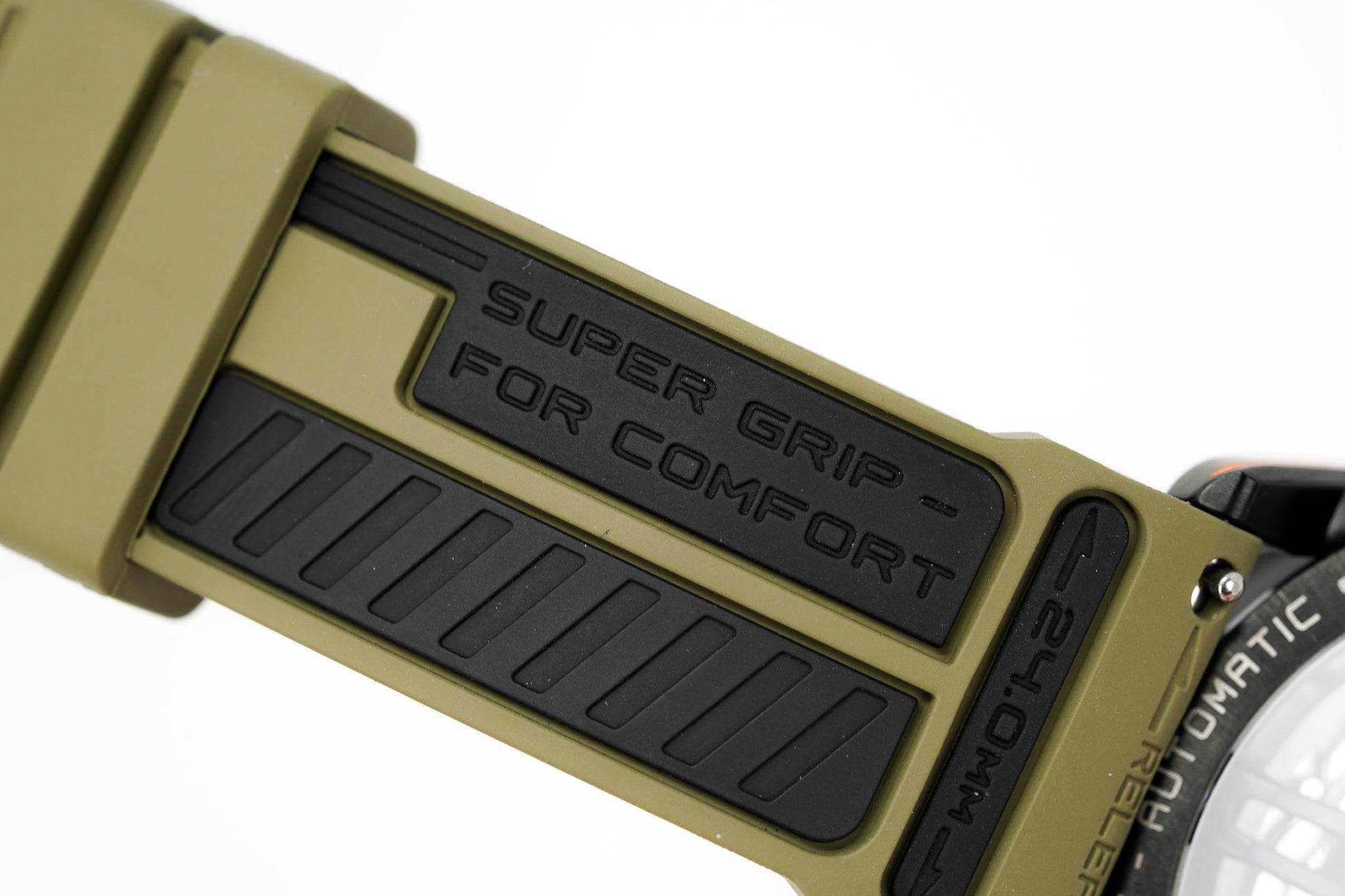 17cm x 24/22mm Two-Tone Black/Khaki Double Compression FKM Strap with Black IP 316L Stainless Steel Buckle - Strap Equipped with “Easy Spring Bar” for Easy Strap Interchange.