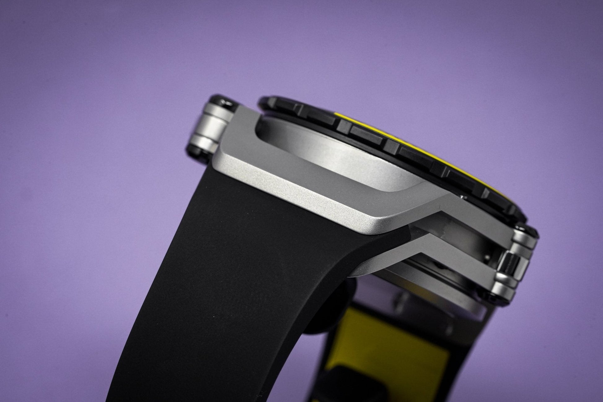 The ‘Reverse’ system allows the case to be inverted fully in both directions. A quick-release button releases the crown from its protection by rotating the crown protector. Two special arms allow the case to rotate freely, and a clearly recognizable click tells you when the case is in the correct position to be locked back into place.