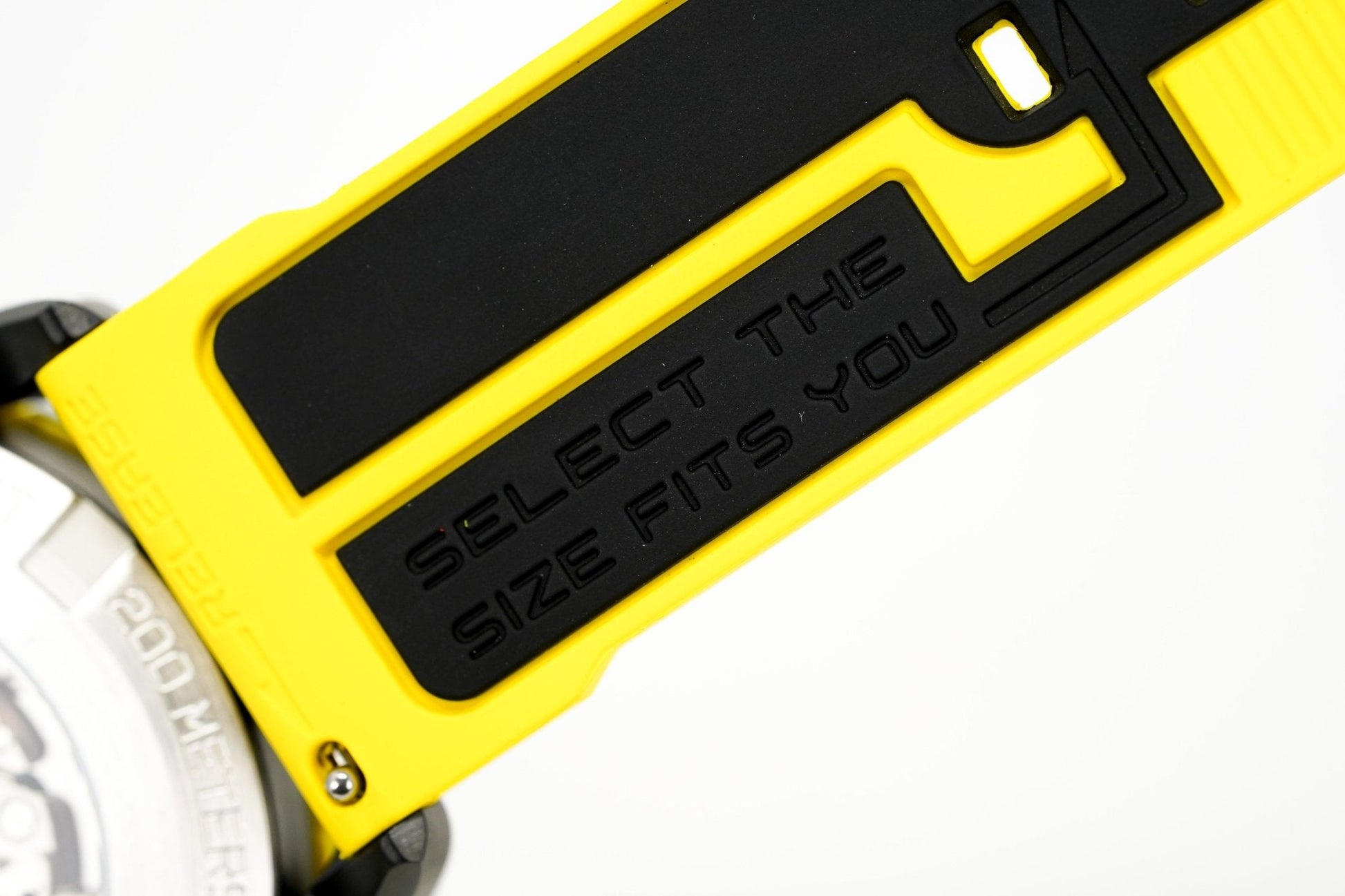 17cm x 24/22mm Two-Tone Yellow/Black Double Compression FKM Strap with IP Black 316L Stainless Steel Buckle - Strap Equipped with “Easy Spring Bar” for Easy Strap Interchange.