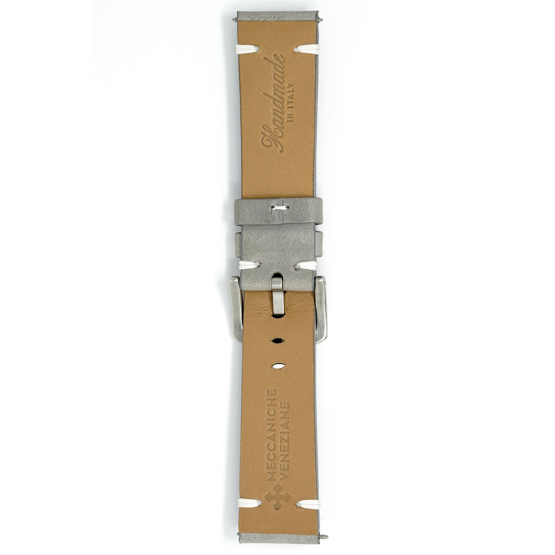 22/20mm width x 21.5cm Length Grey Handmade in Italy Leather Strap with White Stitchings - Fitted With a Brushed Stainless Steel Buckle.
