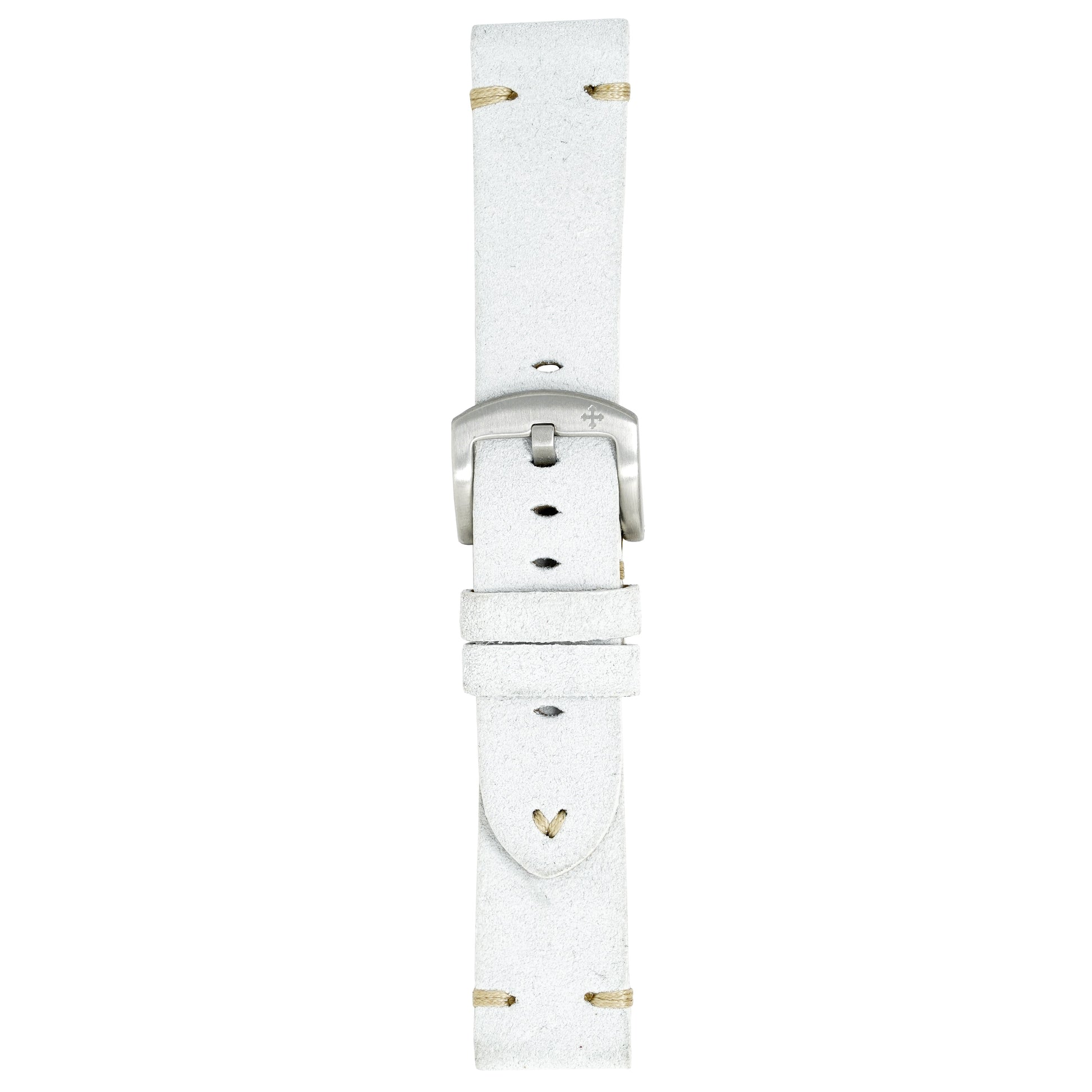 22/20mm width x 21.5cm Length White Handmade in Italy Leather Strap with Gold Stitchings - Fitted With a Brushed Stainless Steel Buckle.