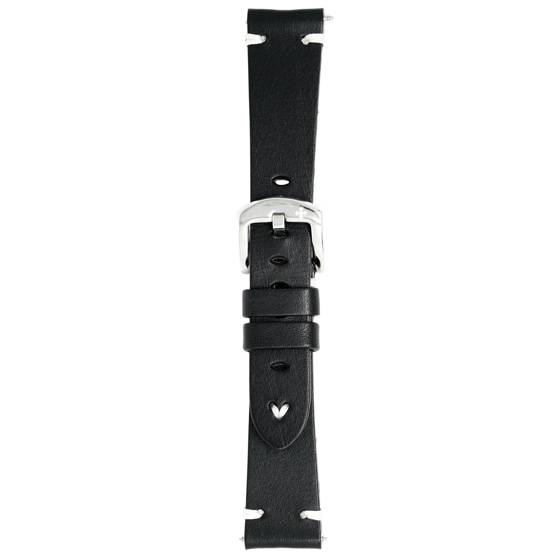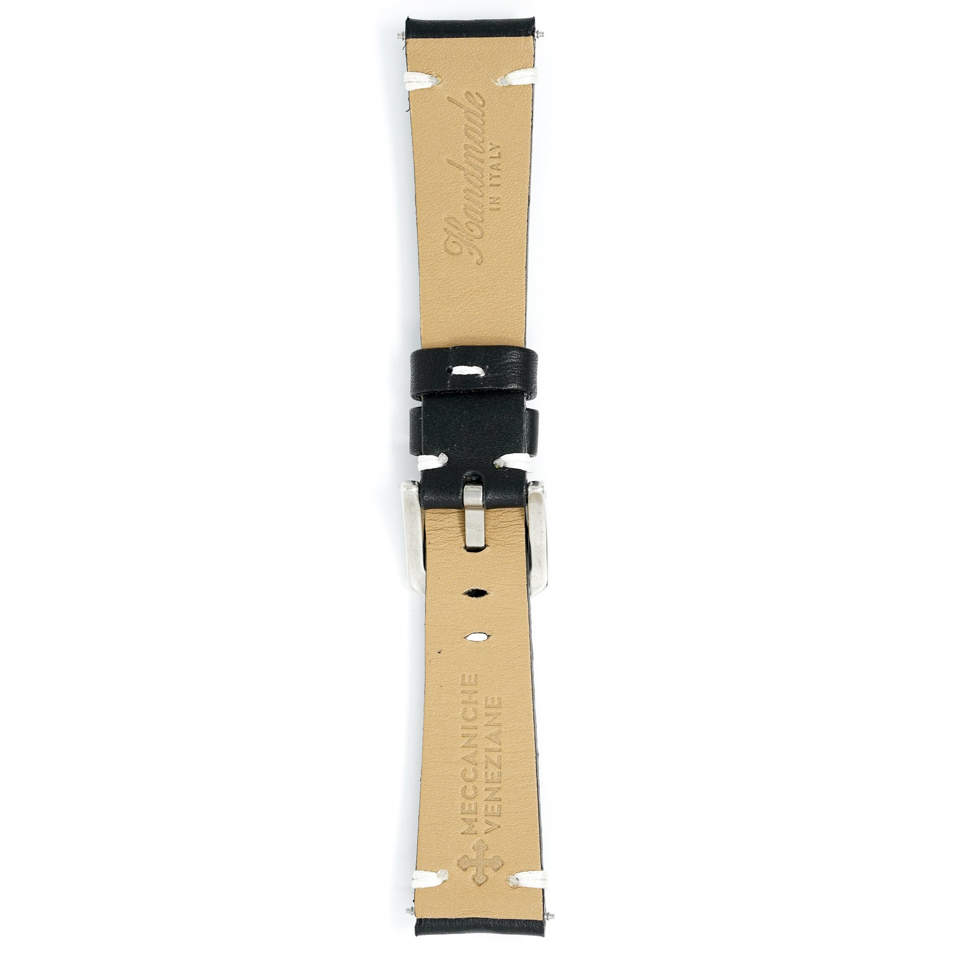 20/15.5mm width x 20cm Length Black Handmade in Italy Leather Strap with White Stitchings - Fitted With a Polished Stainless Steel Buckle.