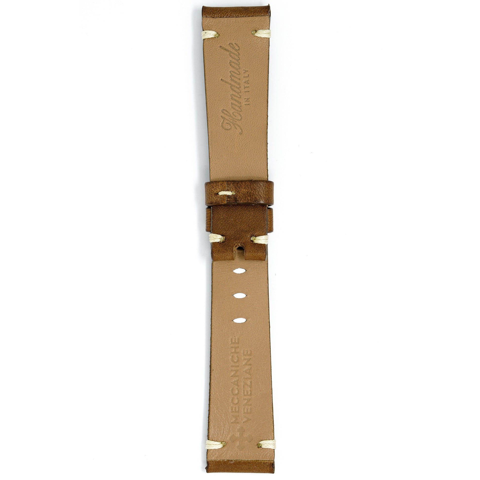 20/15.5mm width x 20cm Length Brown Handmade in Italy Leather Strap with White Stitchings.