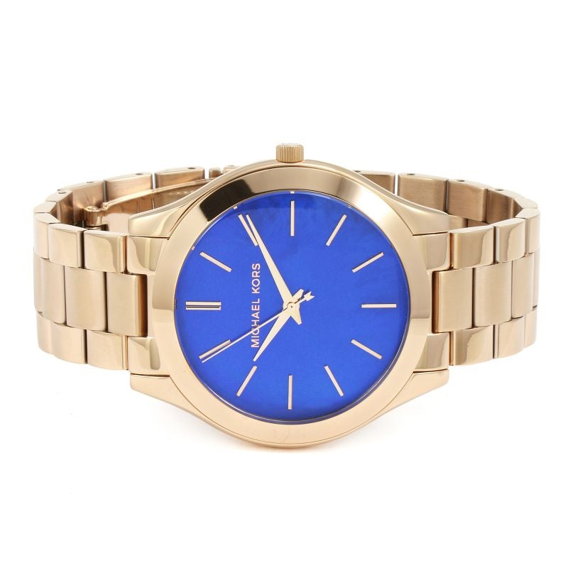Michael Kors Unisex Watch Slim Runway 42mm Rose Gold Dark Blue MK3494