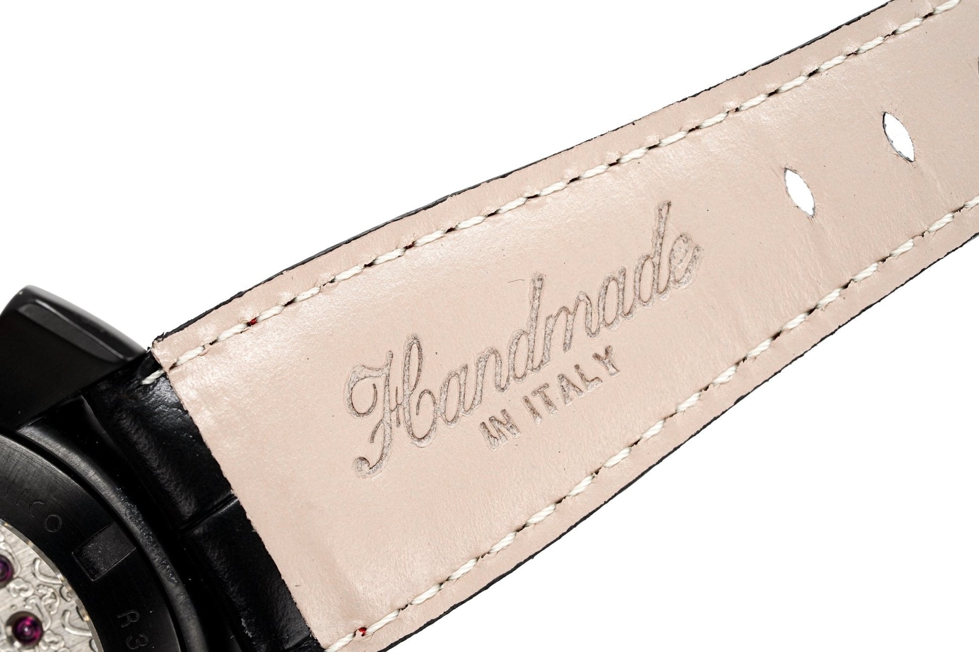 25/16mm x 17.5cm Black Handmade Italian Croco Imitation Leather Strap with Black PVD Stainless Steel Buckle.