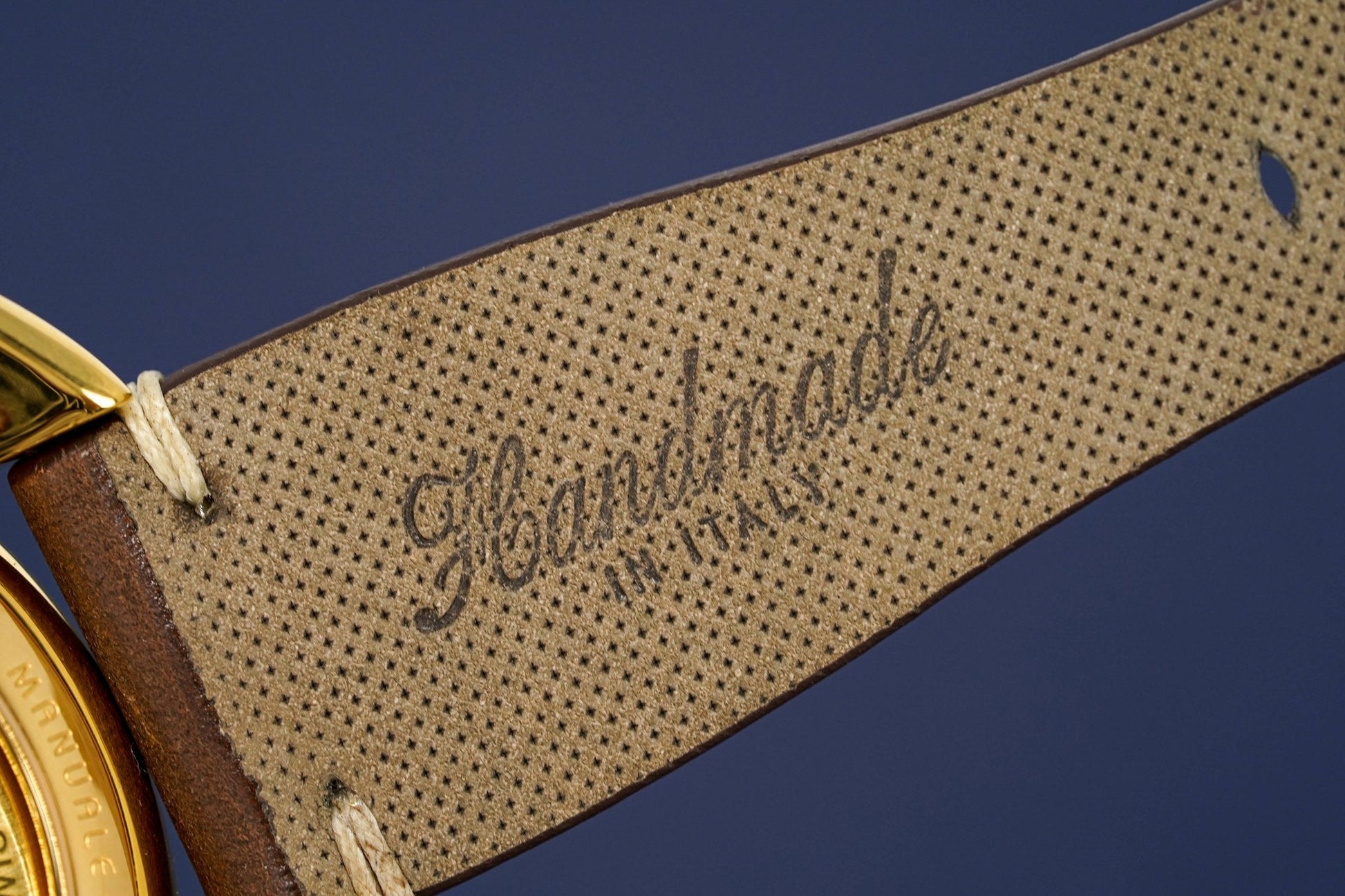 25/16mm x 17.5cm Brown Handmade Italian Croco Imitation Leather Strap with Yellow Gold Stainless Steel Buckle.