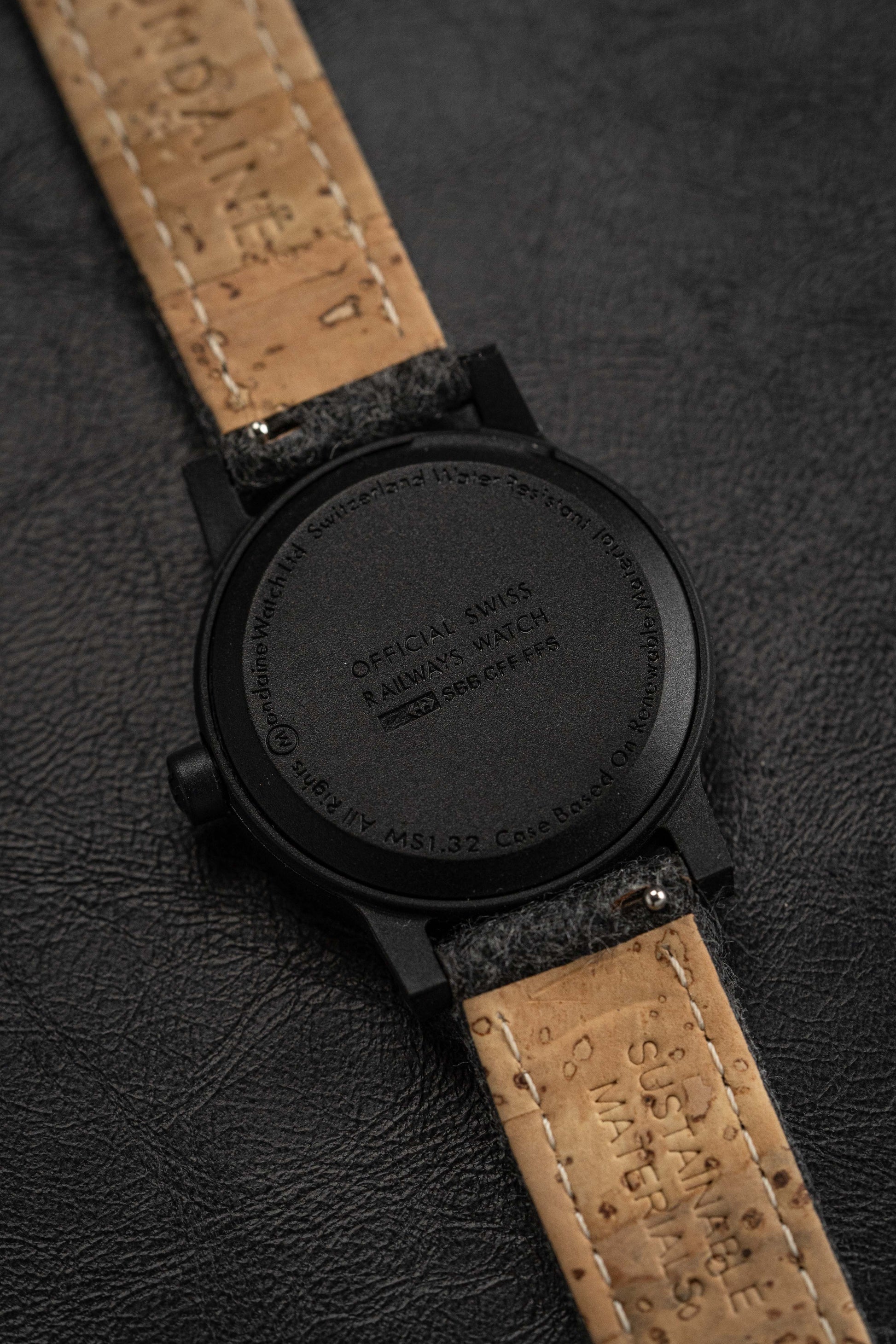 32mm Black Renewable Raw Material Case - Hardened Mineral Crystal - Regular Gasket Crown - Solid Caseback.