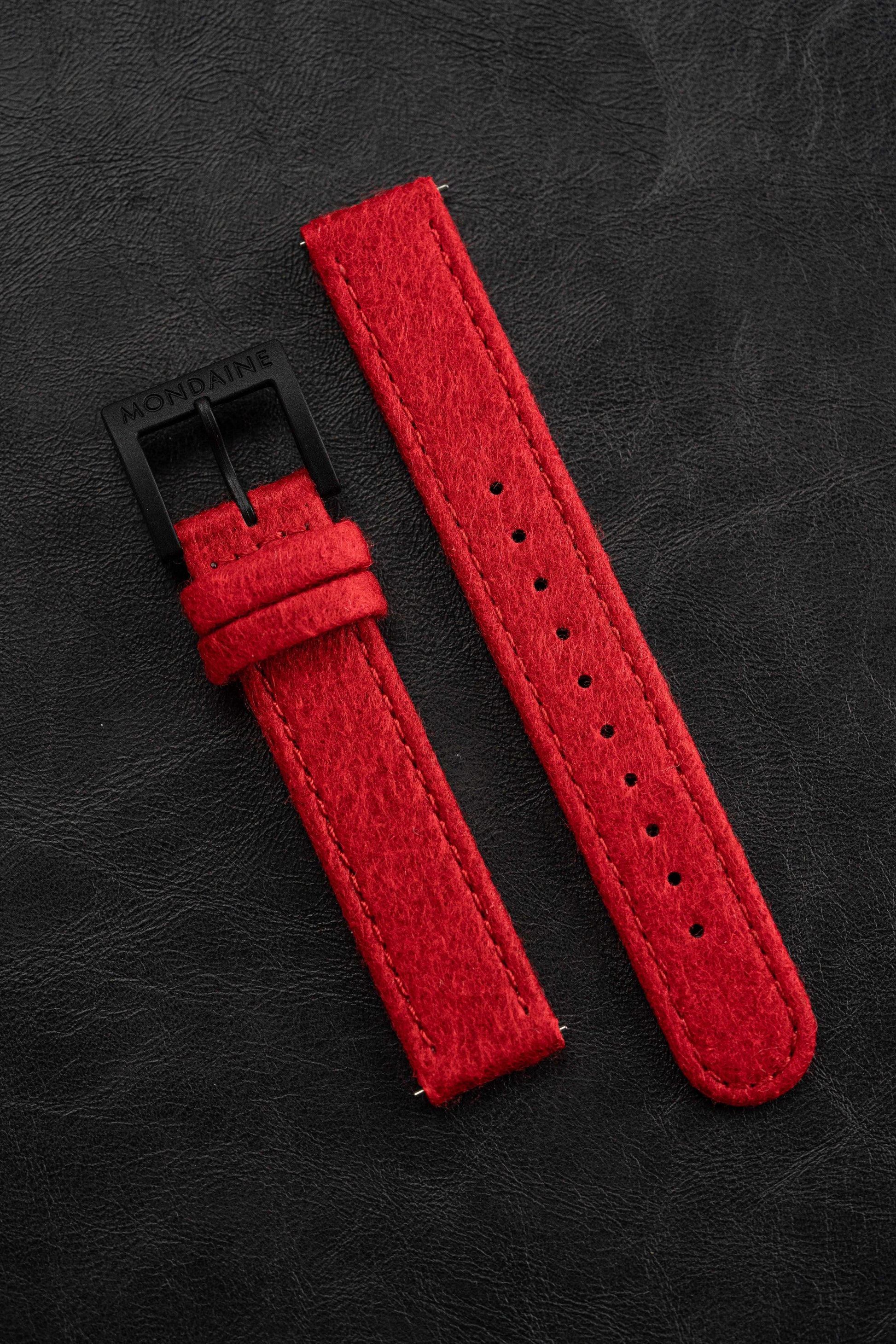 16mm Lug Width - Grey Felt From PET And Additional Red Felt From PET - Natural Cork Lining - Black Bio Based Polyamide Pin Buckle.