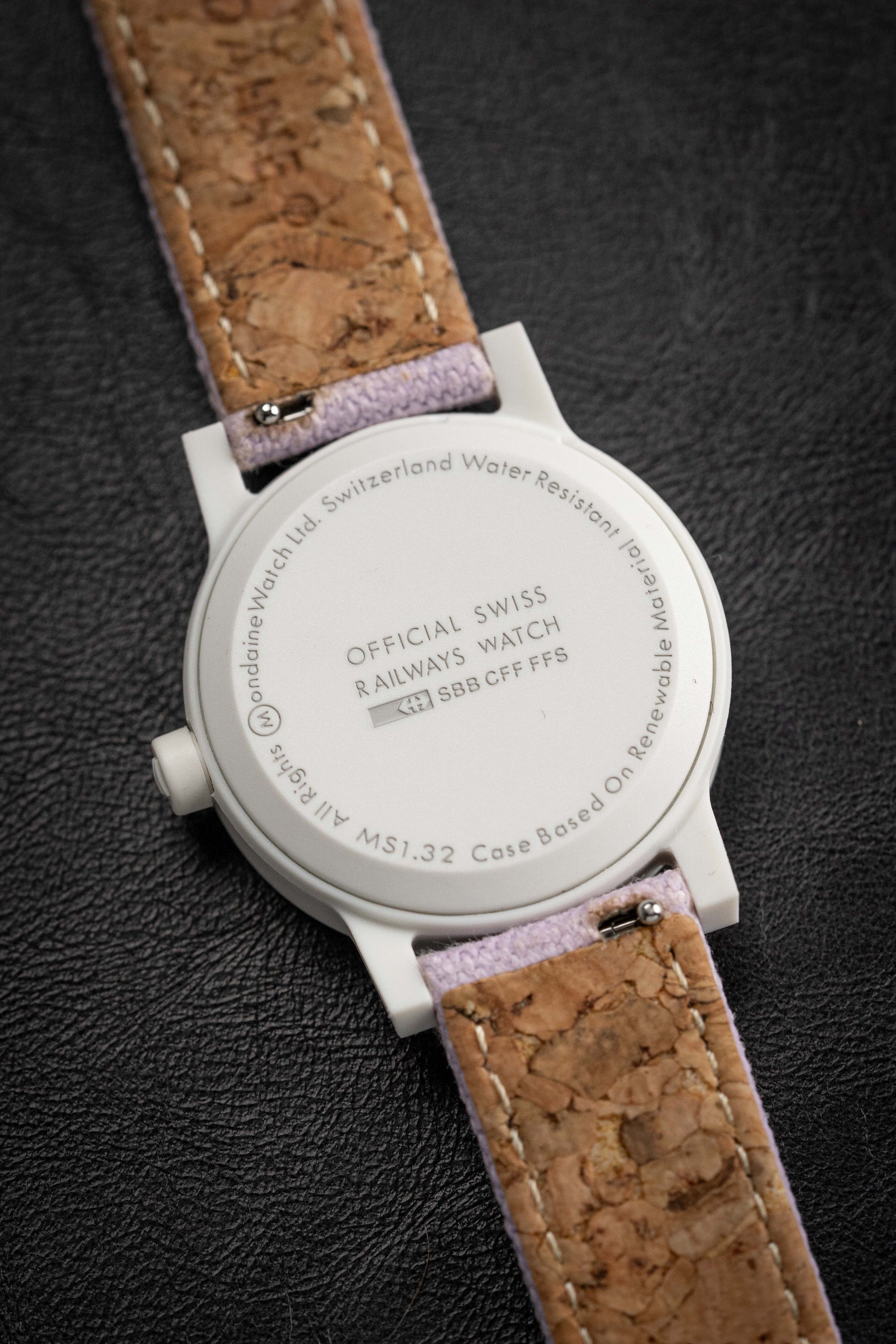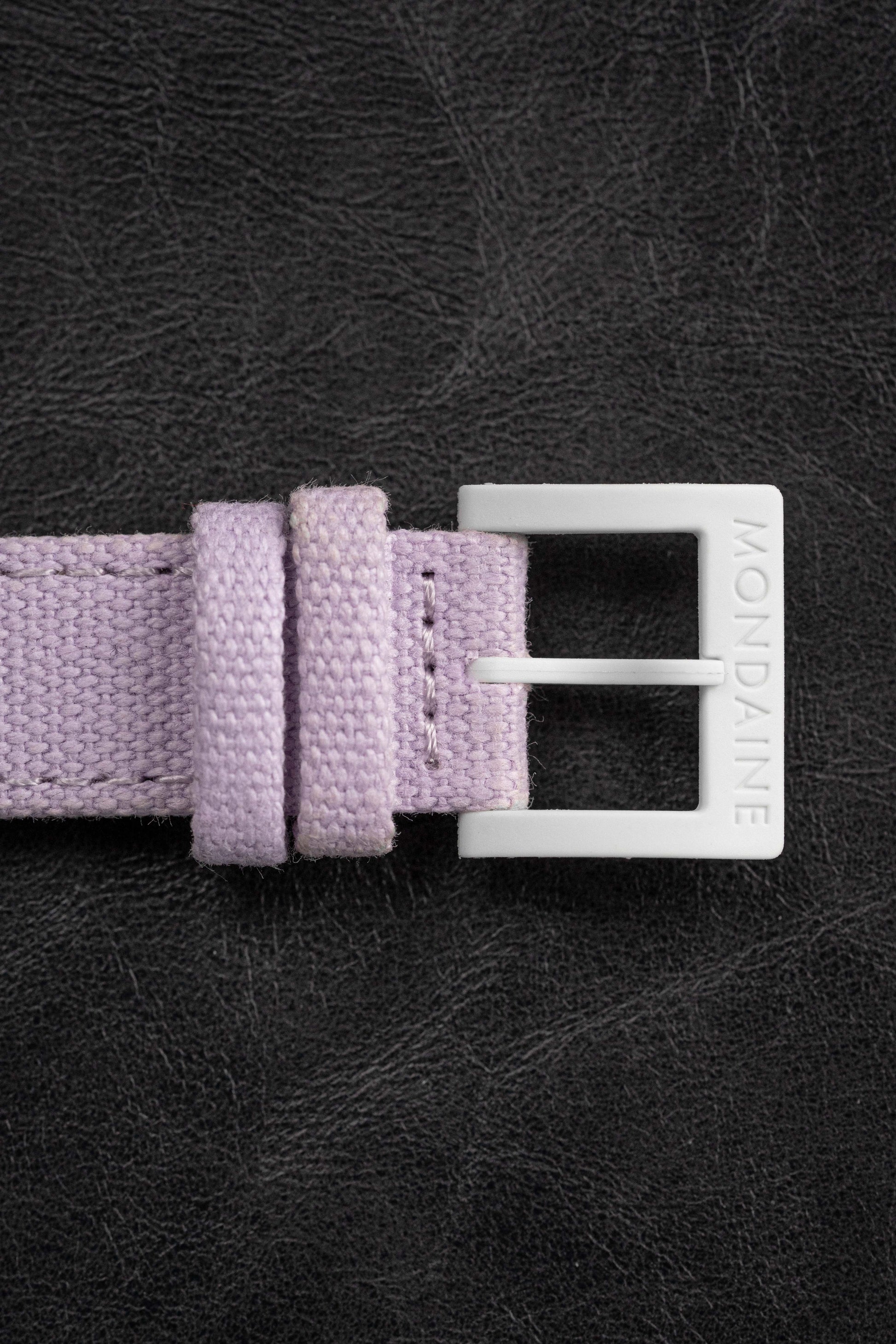 16mm Lug Width - Lavender Textile Strap - Natural Cork Lining - White Bio Based Polyamide Pin Buckle.