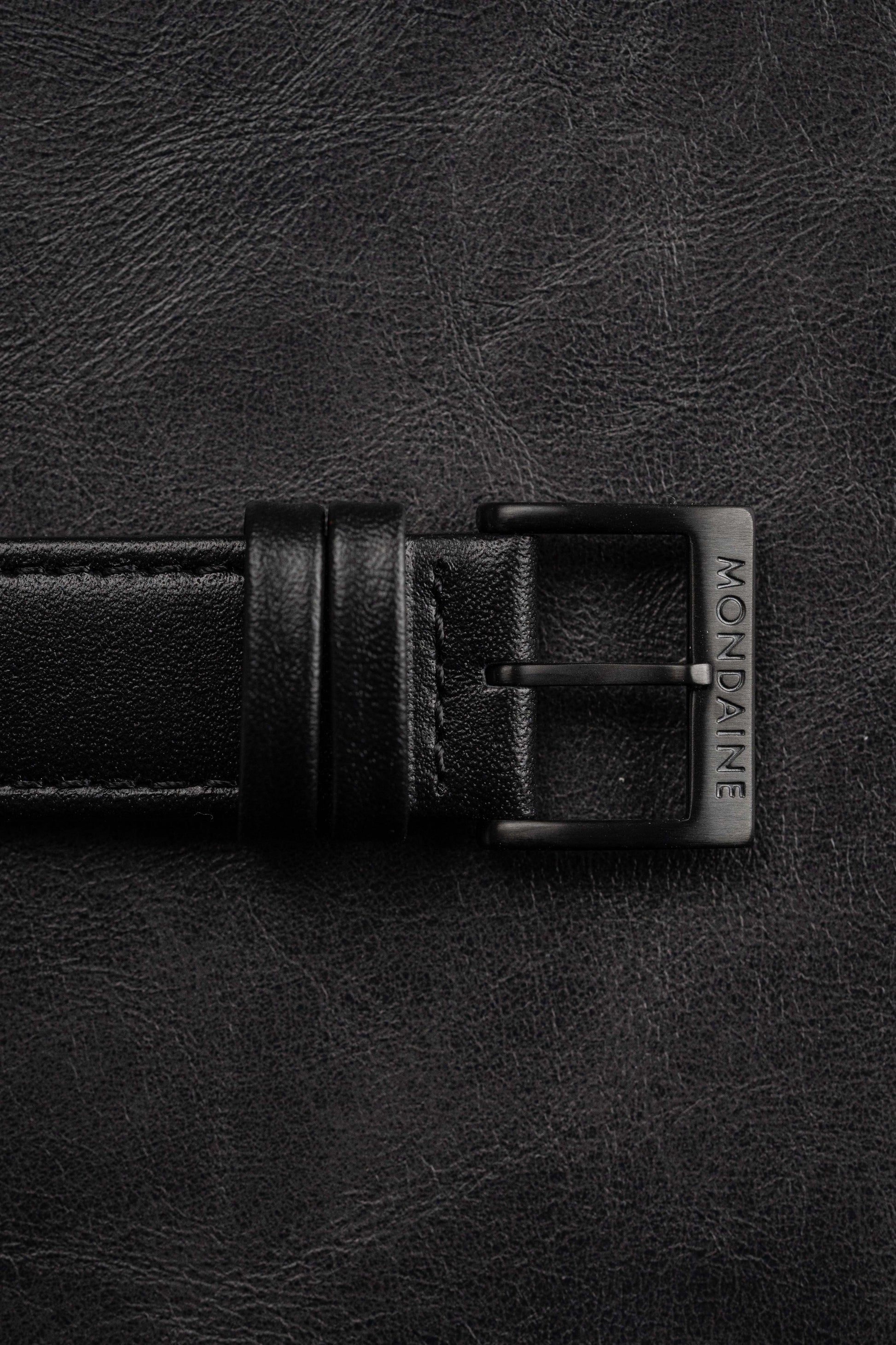 16mm Lug Width Black Leather Strap - Black Stainless Steel Pin Buckle.