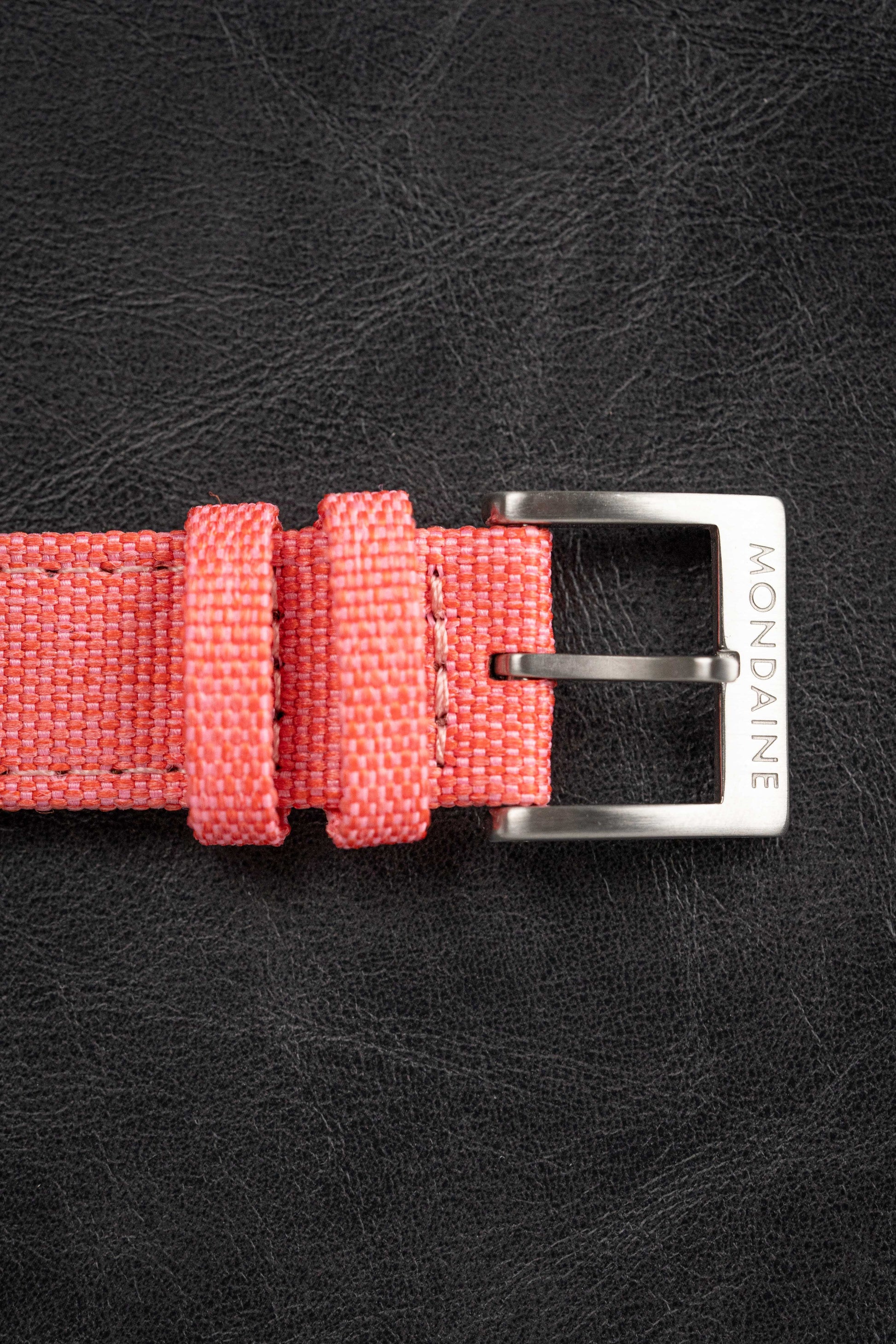 16mm Lug Width Coral Red Recycled Textile With Stitching And Nubuck Lining - Stainless Steel Pin Buckle.