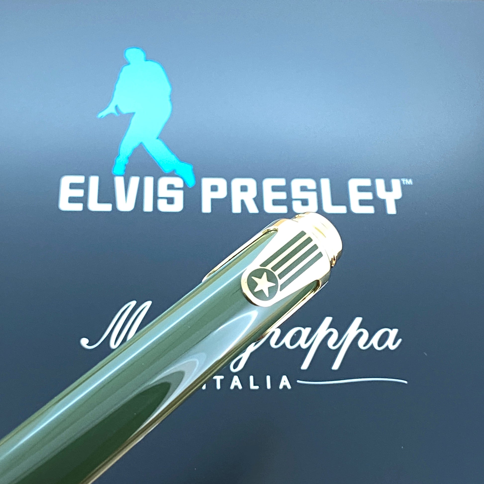 Green marks 1958, the year Elvis was drafted into the US Army. Reminiscent of the period when Elvis was in uniform, the pen features a pocket clip with the stripes to show his rank of sergeant. For this model, 500 fountain pens, 500 roller balls and 958 ballpoint pens have been issued. The gold edition numbers 11 fountain pens, 11 rollerball pens and 11 ballpoint pens, the tally of 33 equaling the number of films he made: 31 features and two live documentaries.