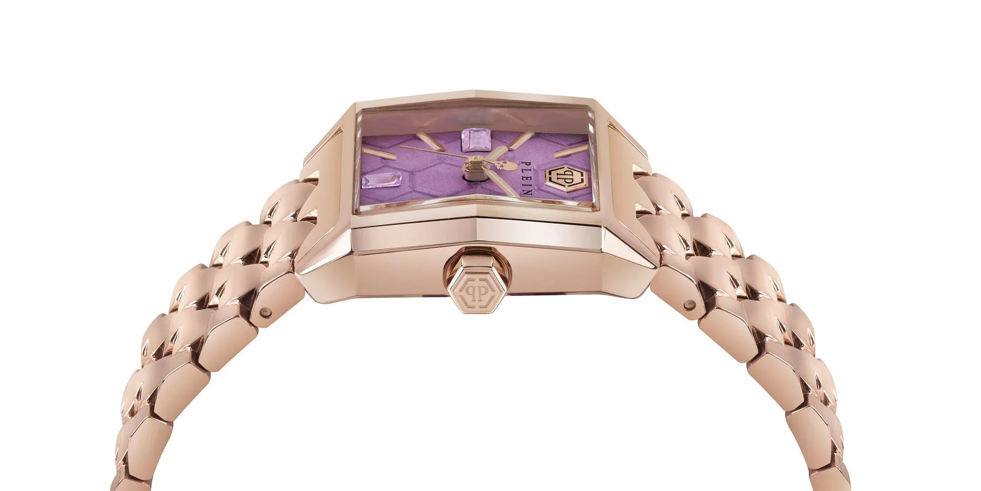 Philipp Plein Ladies Watch Offshore Square Lilac Rose Gold PWMAA0722