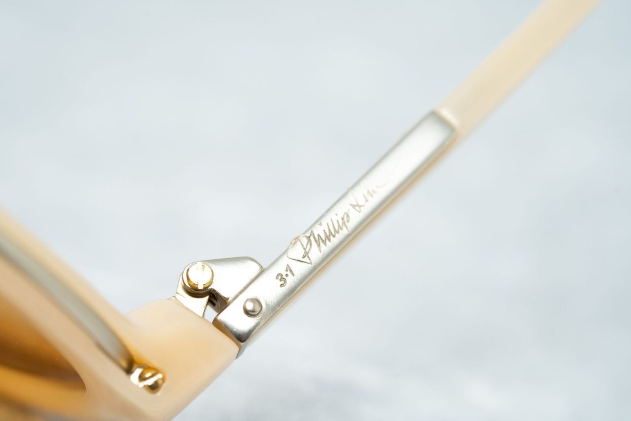 - Temple Material: Acetate with Brushed Gold Logo Branding on Left Temple