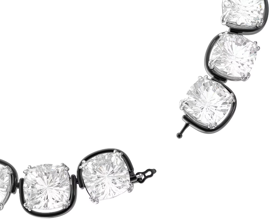 Designed to give the illusion of floating stones, this all-around choker necklace will make an iconic addition to your jewelry collection. Showcasing classic cushion cut crystals in a modern setting, this versatile piece can be styled for day or night, solo or stacked, to bring a sense of mystery to any look.