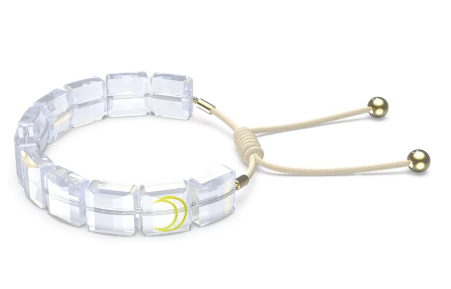 This crystal bracelet is a fresh take on traditional beadwork and symbolic references. Crafted from white square cut crystals and finished with an adjustable waxed cotton cord, it features a printed moon motif to symbolize new beginnings and turning your dreams into a reality. Bring joy and positivity to your jewellery collection with this special everyday bracelet.