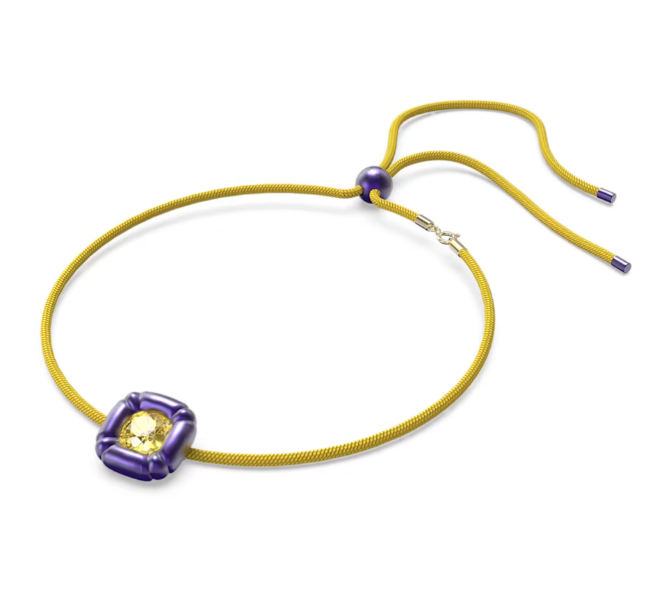 Drawing inspiration from the Pop Art movement, this bracelet features a single precision-cut crystal cushioned in a glossy, moulded setting, playfully suspended on a bubble-gum yellow, braided cord. Layer yours up in multiples for an experimental look, or wear it alone for a singular burst of colour.