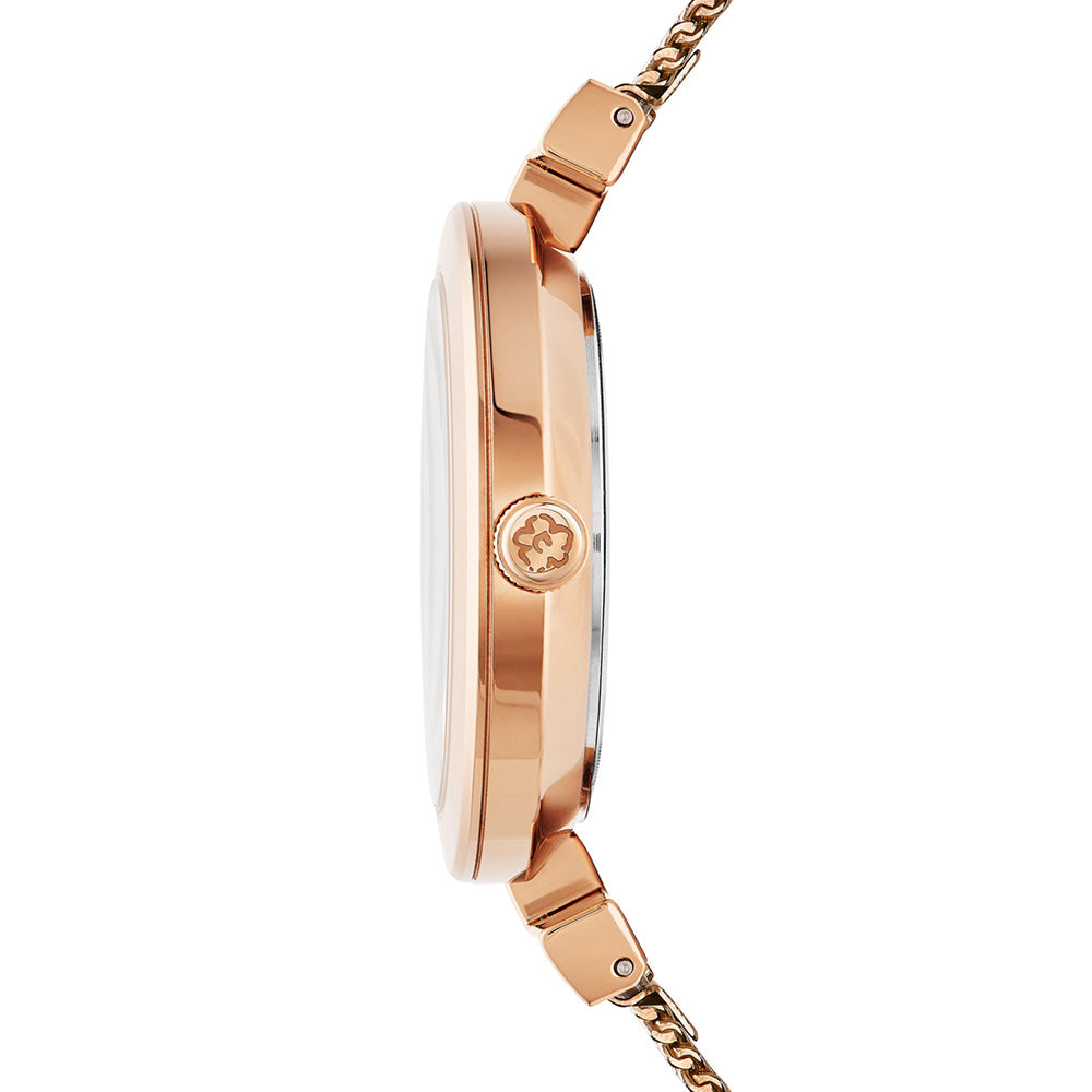 Elevate your look with this elegant watch featuring a rose gold case and a pink sunray dial paired with a matching rose gold mesh band. The sleek design and luxurious materials make it a standout accessory for any occasion.