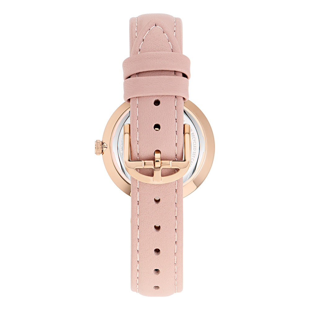 Make a fashion statement with this eco-friendly watch featuring a rose gold recycled stainless steel case and a pink dial. The pink vegan leather strap adds a touch of luxury, making it the perfect accessory for conscious fashionistas.