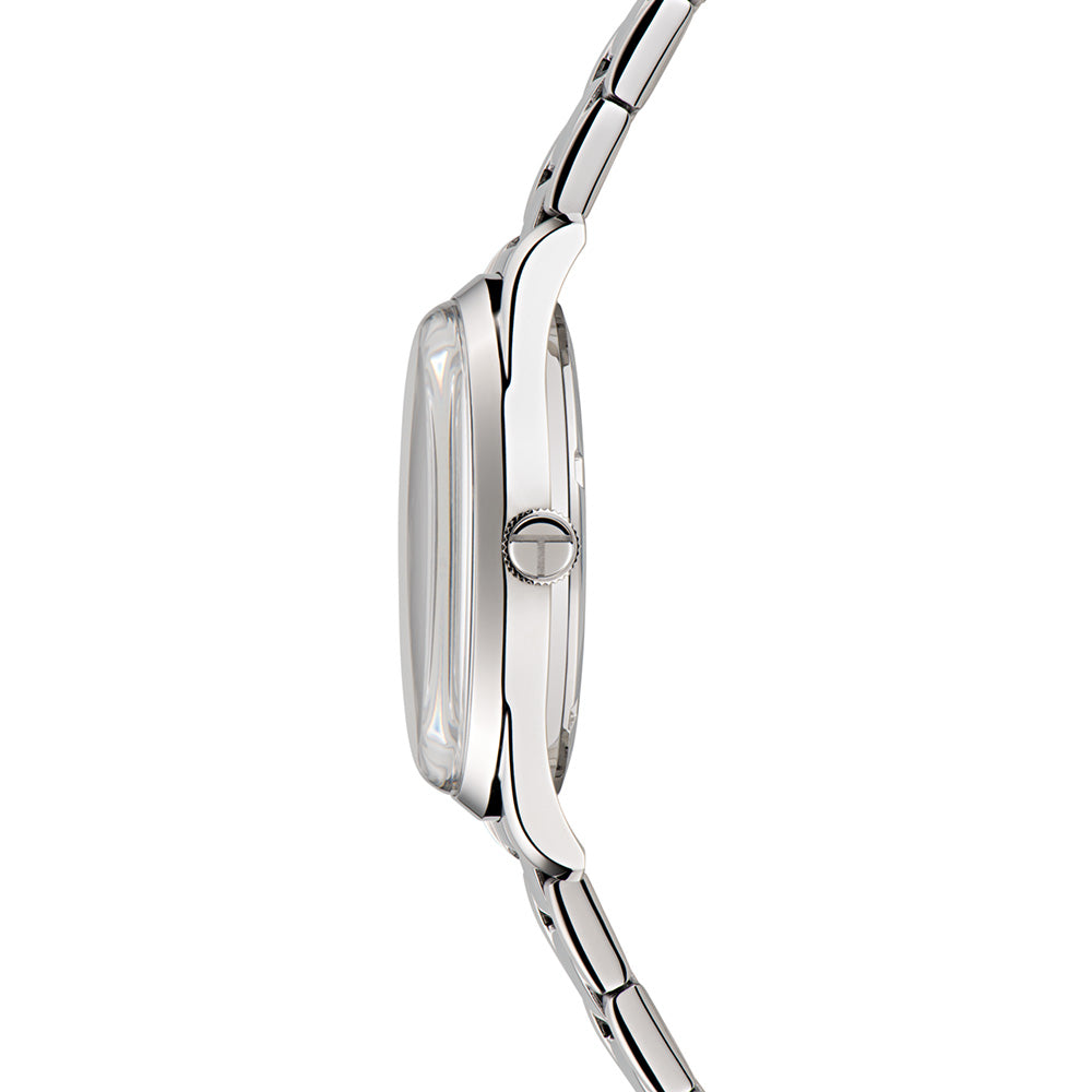 Add a touch of sophistication to your look with this sleek watch featuring a silver recycled stainless steel case and a black dial. The silver bracelet adds a touch of elegance, making it the perfect accessory for any outfit.